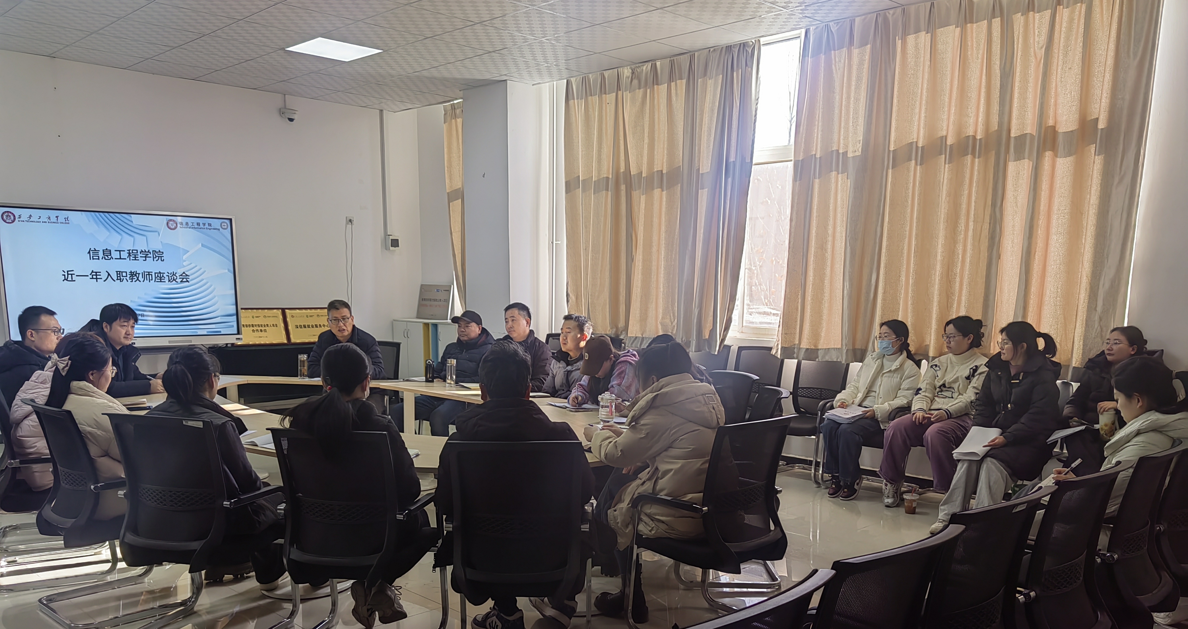 在高等教育蓬勃发展的当下,高校深知教师能力提升是铸就教育辉煌的关键基石,对于新入职教师的悉心培养更是重中之重。西安工商学院信息工程学院始终将助力教师成长作为学院发展的核心驱动力。1月9日,在新E代产业学院的大力支持下,一场备受瞩目的近一年入职教师座谈会在该学院隆重召开。执行院长张琳、教学副院长王飞以及学院各系部主任、学科带头人齐聚一堂,与2024年新入职的27位专职教师热情相拥,共同开启这场关乎成长、聚焦未来的交流盛会,旨在为学院发展注入源源不断的新生力量,让新教师在这片教育沃土上茁壮成长,绽放光芒。