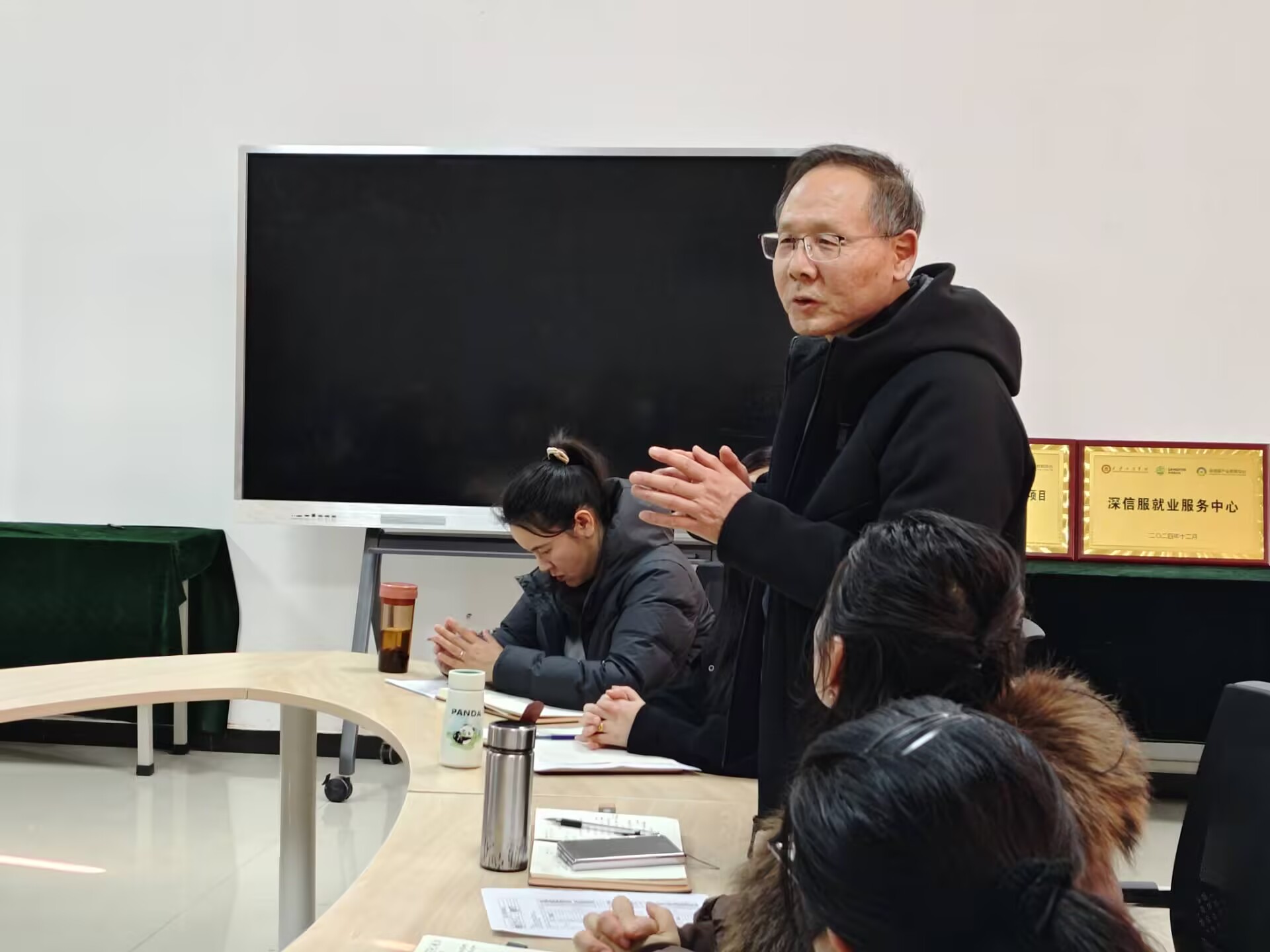 最后,任院长对本次会议总结发言,肯定了 2024 年成绩并感谢全体教职工的付出,针对教学安排,提出新教师上新课应制定不同标准,先确保站稳讲台,关注并指导新教师把握教学内容重点,后续提升教学方法。强调学生假期安全家校责任,教职工应重视自身安全与学院发展紧密相连,鼓励教师抓住评估前时机提升个人发展,利用假期规划教学与科研,撰写论文、争取项目,为职称评审做准备,最后祝全体教职工新年快乐。