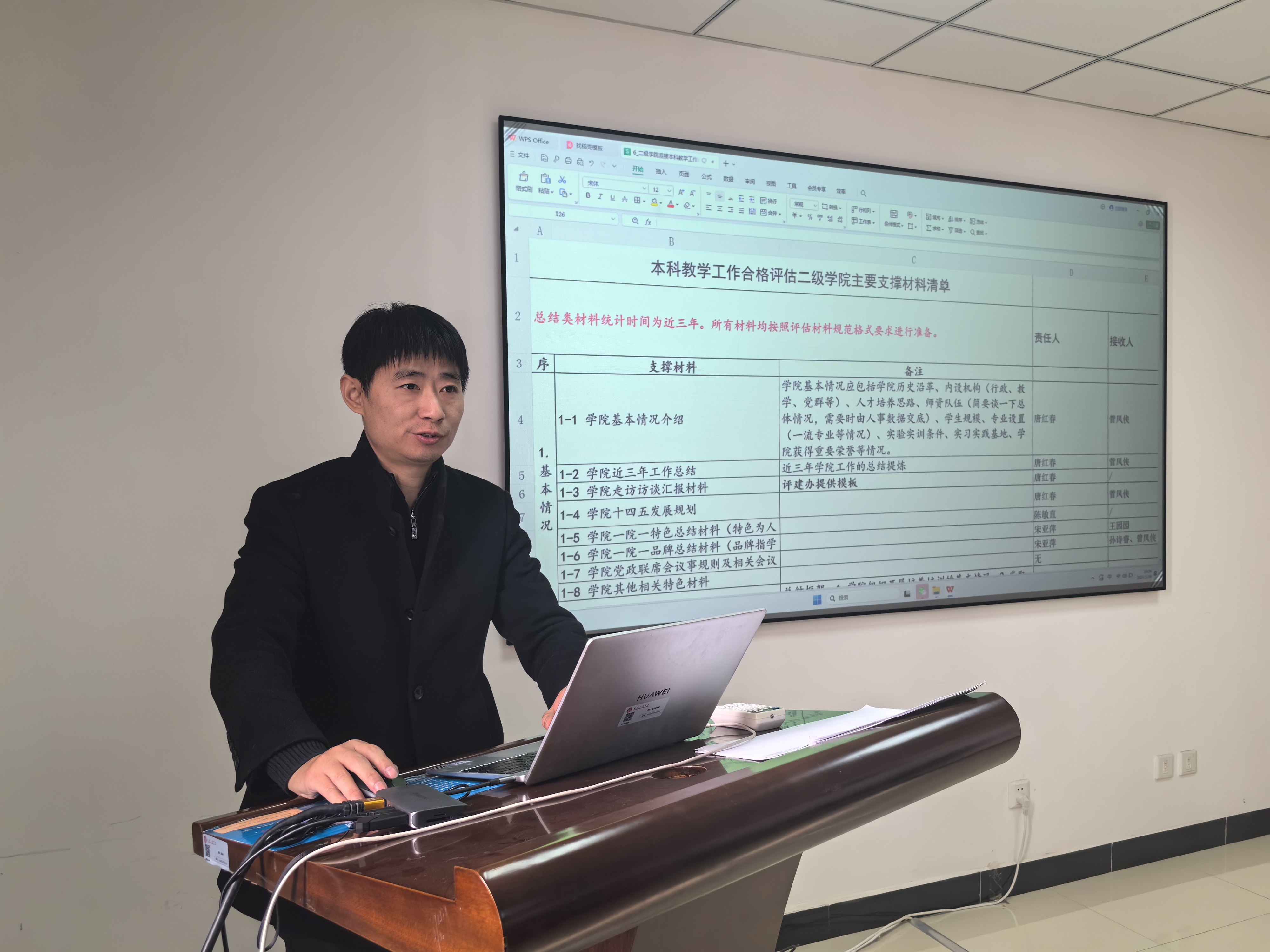 随后,他对合格评估阶段性工作进行了总结。他表示,在全体师生的共同努力下,学院在合格评估工作中完成了阶段性的工作,但同时也存在一些不足之处,如部分教学资料的整理不够规范、个别教师对评估标准的理解还不够深入等。针对这些问题,唐院长提出了下一步工作的具体要求和任务分工。他强调,学院各部门和全体教师要高度重视合格评估工作,严格按照评估标准和要求,认真梳理各项工作,查漏补缺,确保评估工作顺利通过。同时,要以合格评估为契机,进一步加强学院的内涵建设,提升教学质量和人才培养水平。