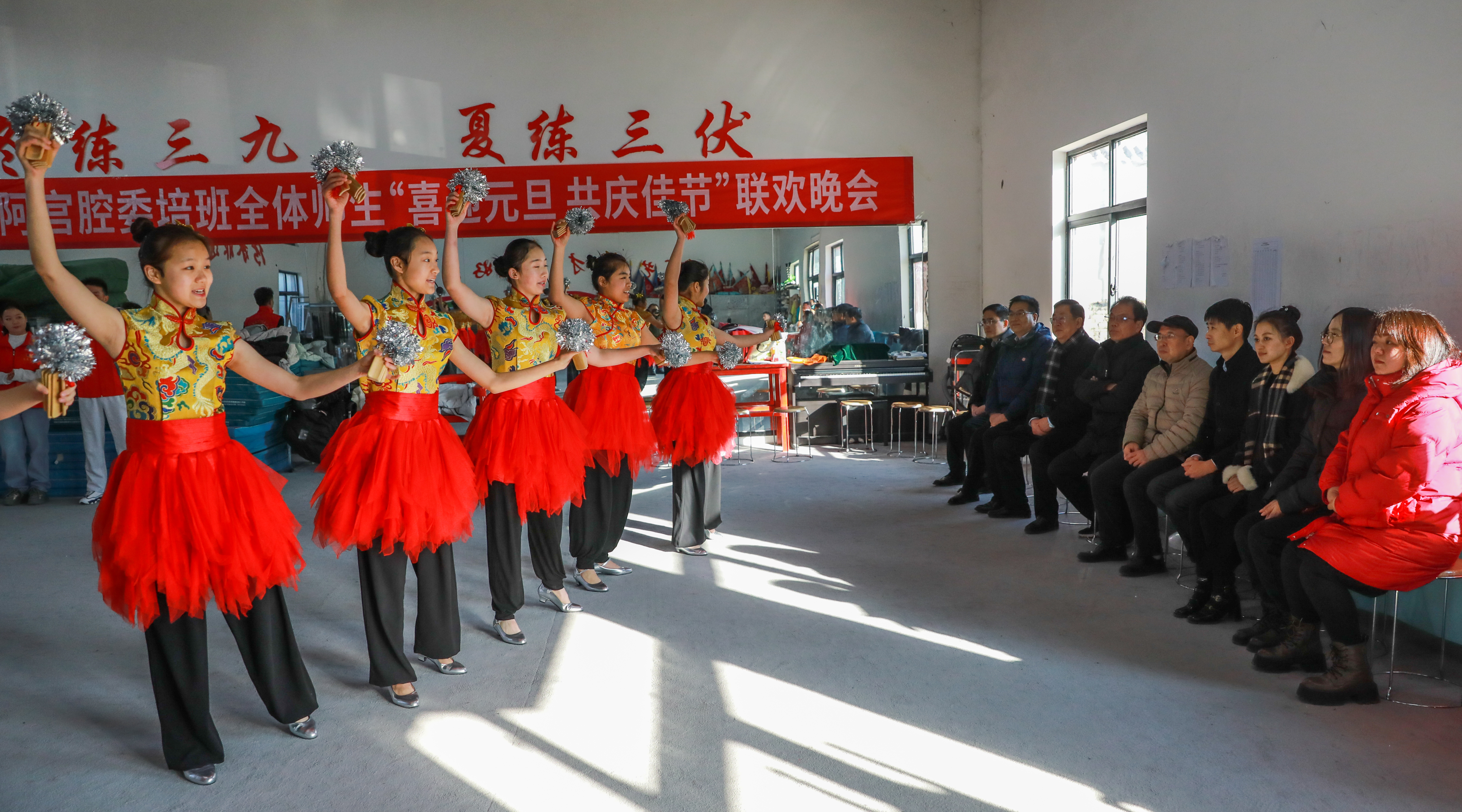 紧接着,一行人前往富平县非物质文化遗产阿宫腔所在的公共实训基地。在副团长李曼的介绍下,大家走进排练室,近距离接触并欣赏了阿宫腔剧团小演员们的排练表演,让一行人更加直观地感受到了中国优秀传统戏剧文化的独特魅力。
