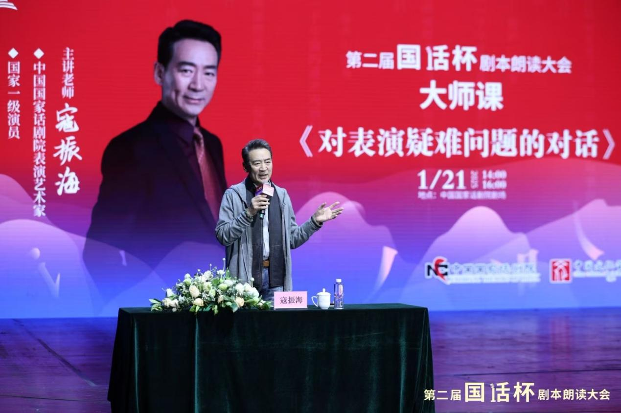 大会期间,我校师生有幸参与了与著名表演艺术家面对面的大师班讲座及剧本展演活动。1月21日下午,中国国家话剧院表演艺术家、国家一级演员寇振海先生,为参与者带来了一场题为《对表演疑难问题的对话》的大师课程。课程现场气氛热烈,互动频繁,来自全国各地的参赛选手们积极提问,探讨了他们在学习朗诵和表演过程中所遇到的各种挑战,如怎样精准把控朗诵中的情感起伏与节奏变化、如何从简单的模仿过渡到生动的情境再现,以及如何巧妙地平衡技巧性表现与舞台上的自然生活化等实际问题。我校人文学院师生亲身体验了大师级的艺术指导,同时,指导教师引导学生在互动中积极思考,借助现场展示的优秀案例与学生进行了深入的互动交流,帮助学生深刻理解了表演艺术的精髓。学生从中汲取了宝贵的经验,获得了对于艺术追求的新视角和灵感启发,进一步提升了自身的专业素养与实践能力。