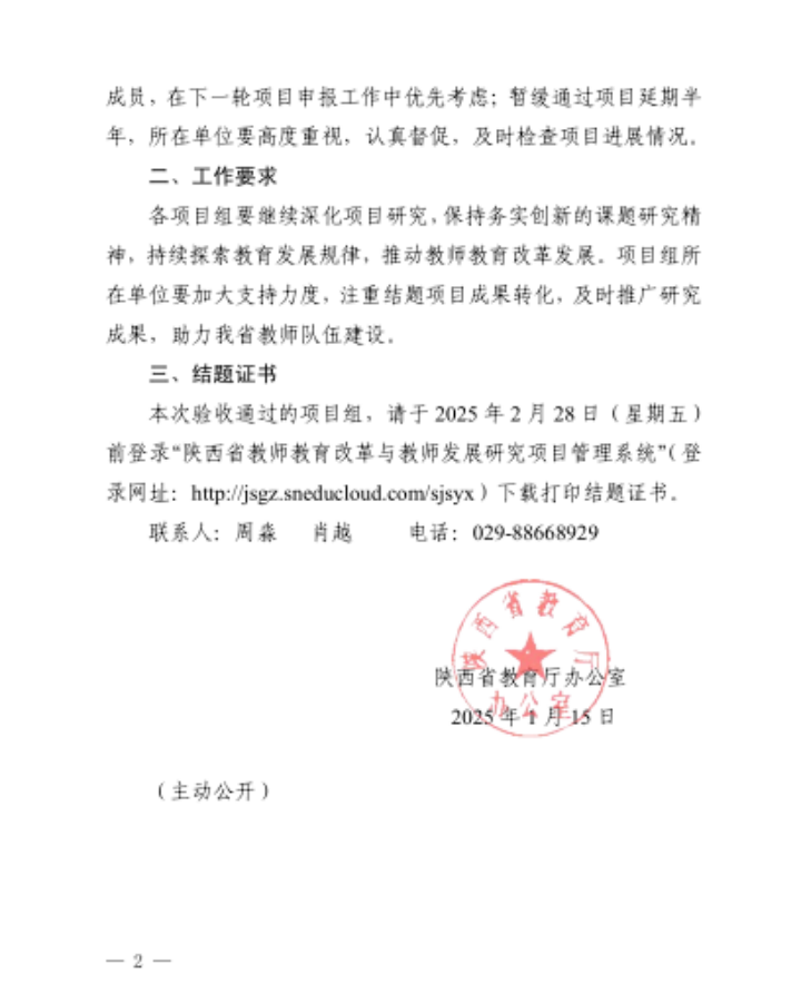 近日,通过《陕西省教育厅办公室关于公布2023年陕西省教师教育改革与教师发展研究项目结题验收结果的通知》获悉,西安工商学院承担的2项“陕西省教师教育改革与教师发展研究项目”通过结题验收,分别是: