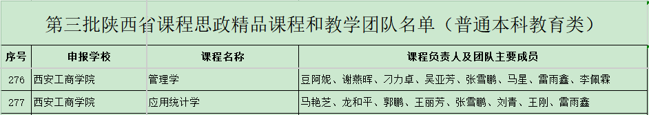 近日,省教育厅下发了《陕西省教育厅关于公布第二批陕西省课程思政精品课程认定结果的通知》(陕教函〔2025〕59号)文件,西安工商学院申报的《管理学》《应用统计学》两门课程成功入选第三批陕西省课程思政精品课程。这一结果不仅是对我校教育教学改革成果的充分肯定,更是对全体师生在课程思政建设中辛勤付出的高度认可。