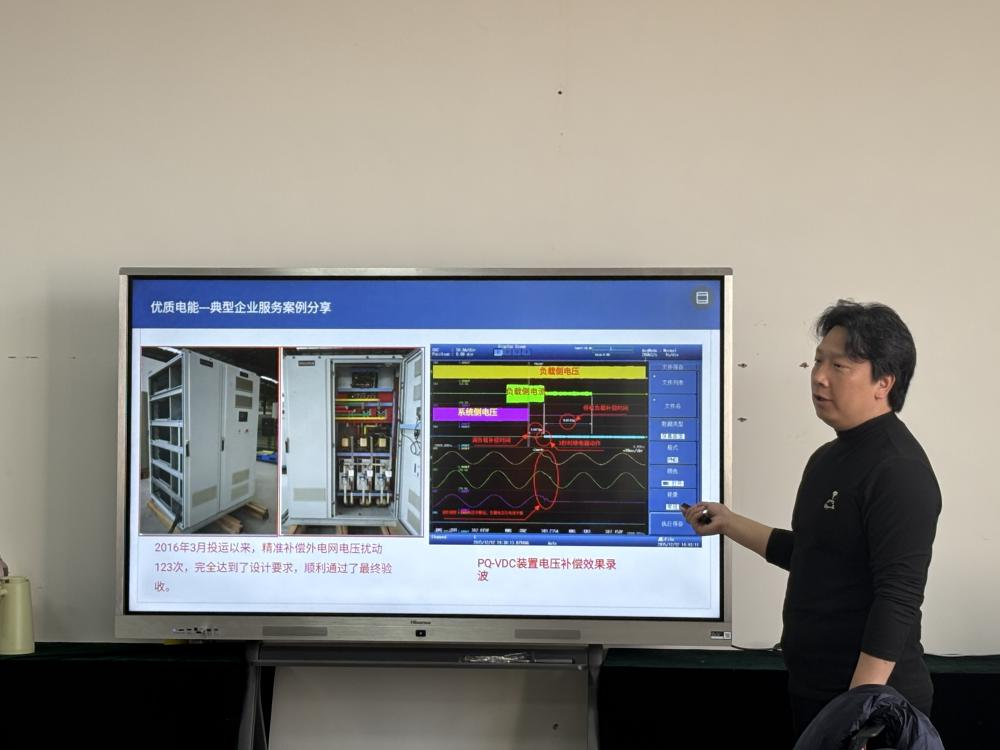 在随后的讨论环节中,双方围绕多个重要议题展开了深入交流。威尔扬科技代表深入探讨了人工智能在电力行业中的应用和发展趋势,重点分析了电压暂态扰动对用户和企业带来的影响,并提出了优化电能使用的解决方案。这些内容不仅为在场的师生提供了具体的行业应用案例,也为学院的教学改革和课程设计提供了新的思路。张琳院长表示,智慧能源和AI技术的结合为学生提供了前沿的知识和技能,能够帮助学生提升实践能力,为高质量就业打下坚实基础。