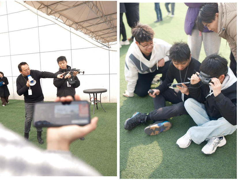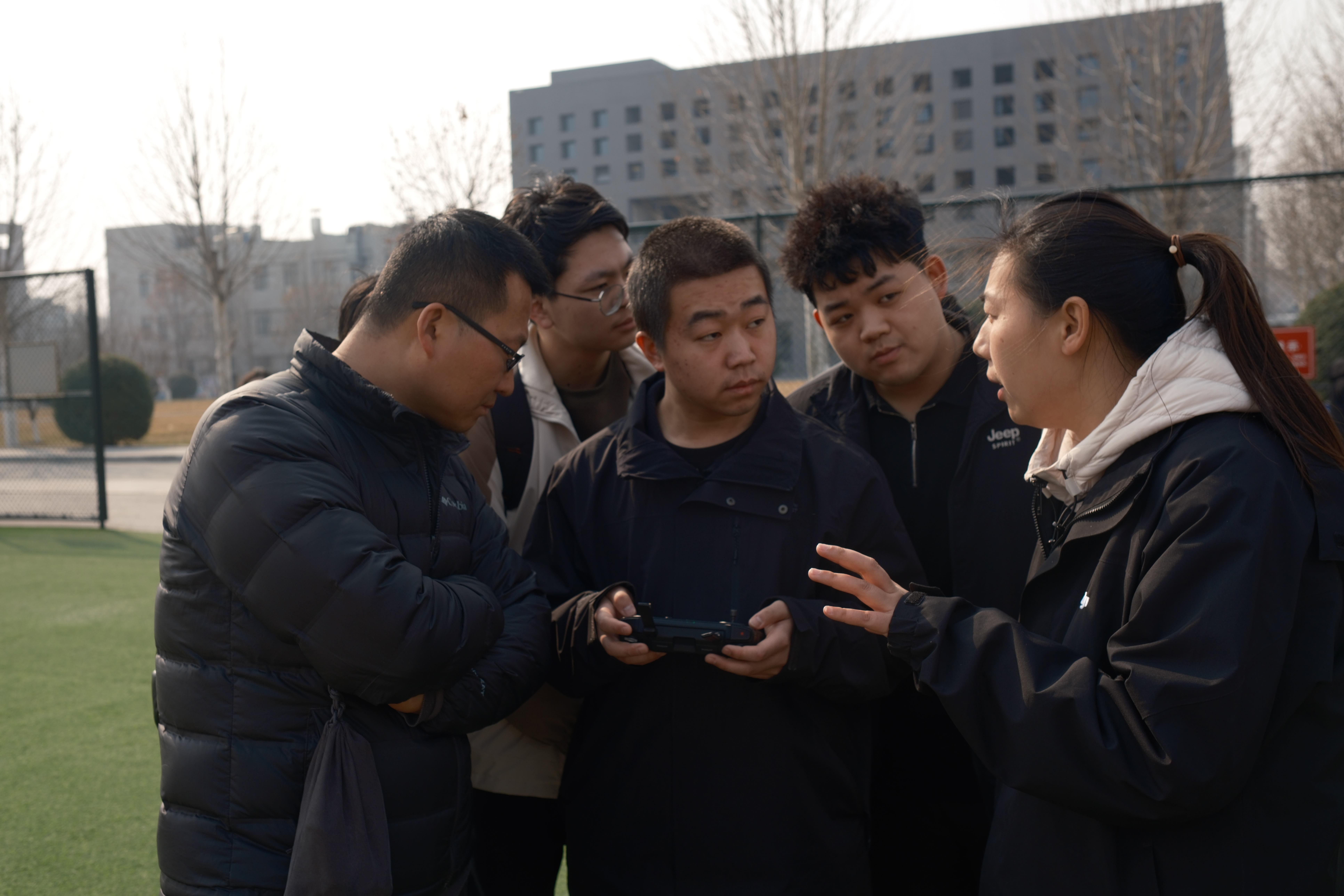 首先资深教练员王政嘉给学生分享了无人机发展历史及应用领域、无人机分类及基本构造、无人机飞行原理及操控方式、无人机相关法律法规及安全飞行注意事项。副总经理和睦分享了无人机起飞、降落、悬停、航线飞行等基本操作,演示了无人机航拍、跟拍等应用。最后学生分组,在专业飞手王政嘉、高翔、周世捷指导下体验无人机飞行操控及航拍体验。