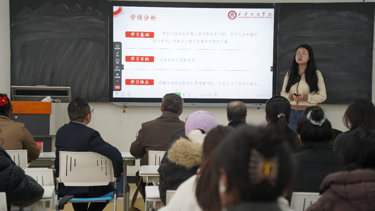 人文学院中文系教师费晓艺以“中外文学史 —— 古希腊戏剧”为主题,分别从说课和课堂教学展示两方面分享交流教学和创新实践,费老师展现出独特的教学风格和扎实的专业素养,教学内容涵盖了基础理论和AI在中文系授课的前沿应用,并与场下学生进行积极互动。结合中国古代神话戏剧引申马克思主义革命精神,将思政内容与授课知识良好结合。