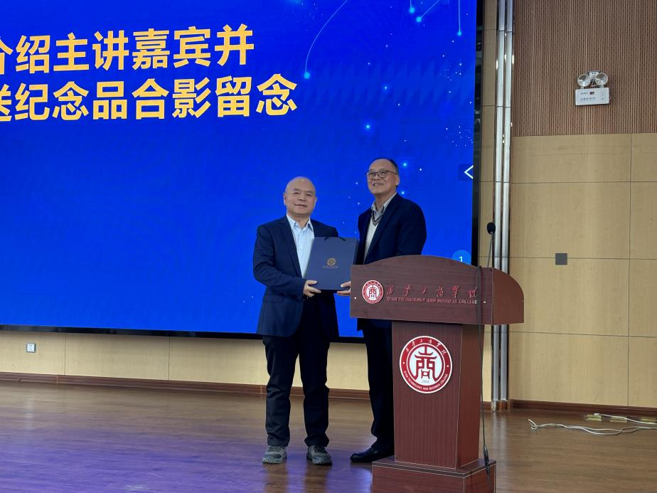 报告开场,由科研处处长——过仕明负责主持讲座,过处长向在场师生隆重介绍了王军生教授。王军生教授不仅是西安交通大学应用经济学博士、省聘三级教授、博士生导师,还在教育与学术领域身兼数职,在金融学、产业经济学等研究方向成果斐然,丰富的履历与深厚的学术造诣赢得了现场师生的热烈掌声。介绍完毕,科研处向王军生教授赠送纪念品,并一同合影留念,为此次学术报告营造了温馨而庄重的开场氛围。