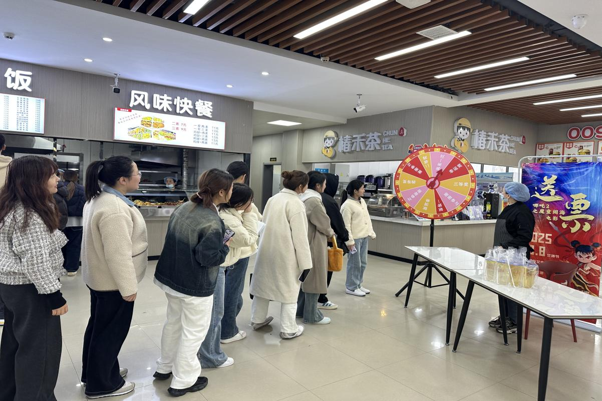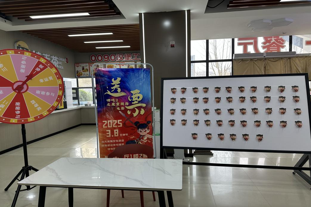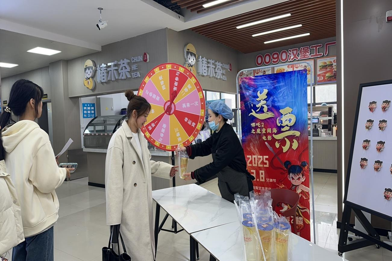 活动现场,设置了丰富的互动娱乐项目,全体女生可以通过在食堂消费,获得抽奖资格抽取哪吒2电影票、精品酸奶、精美鲜花等礼品。同时活动现场摆放“女神节快乐”海报展架,推出了“春日温暖送送送”、“拍照打卡专区”等活动。