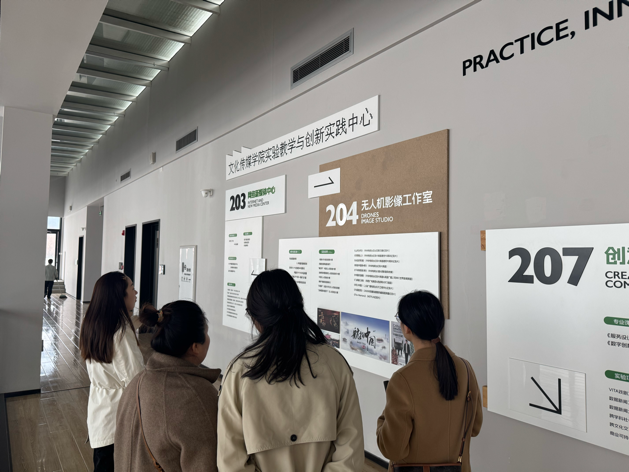 随后,在西安欧亚学院文化传媒学院相关教师的陪同下,实地参观了西安欧亚学院文化传媒学院实验中心,其创意传播工作室、杜比视听混录实验室、剪辑制作实验室、多功能摄影棚、无人机航拍工作室等,通过进阶式和融入式实践教学,前置“职业环境”,为艺术与传媒学院实训教育的应用与发展提供了新的思路。