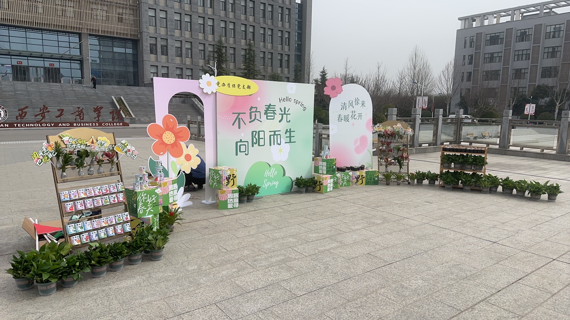 3月12日是一年一度的植树节,在“守护一片绿、孕育新希望”的绿色季节里,为使全校师生能够积极与大自然绿色“互动”,党办质保党支部于西安工商学院泮池处举办“春日祝福”植树节趣味活动,通过趣味性的套圈认领绿植的方式,激发师生对植树造林的热情,提升环保意识,营造绿色美好的校园环境。