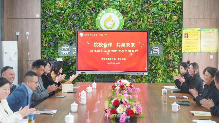 为深入贯彻落实国家关于产教融合的政策、积极推进实践教学基地建设、提高人才培养质量、助推学生职业能力提升,在新视域文化产业学院的大力支持下,3 月 12 日14:00,西安工商学院校长廖民生偕同人文学院党总支副书记、副院长原朝阳,中文系主任许晶晶,中文系专业带头人何江波,产教融合与实践教学中心主任张欢生及辅导员史瑞琪、李情,教师代表刘进、学生代表前往高陵区第一实验小学,与第一实验小学党支部书记、校长赵荣香及校相关领导班子成员、实习指导教师等齐聚一堂,就两校进一步的合作展开深入且全面的探讨与交流。
