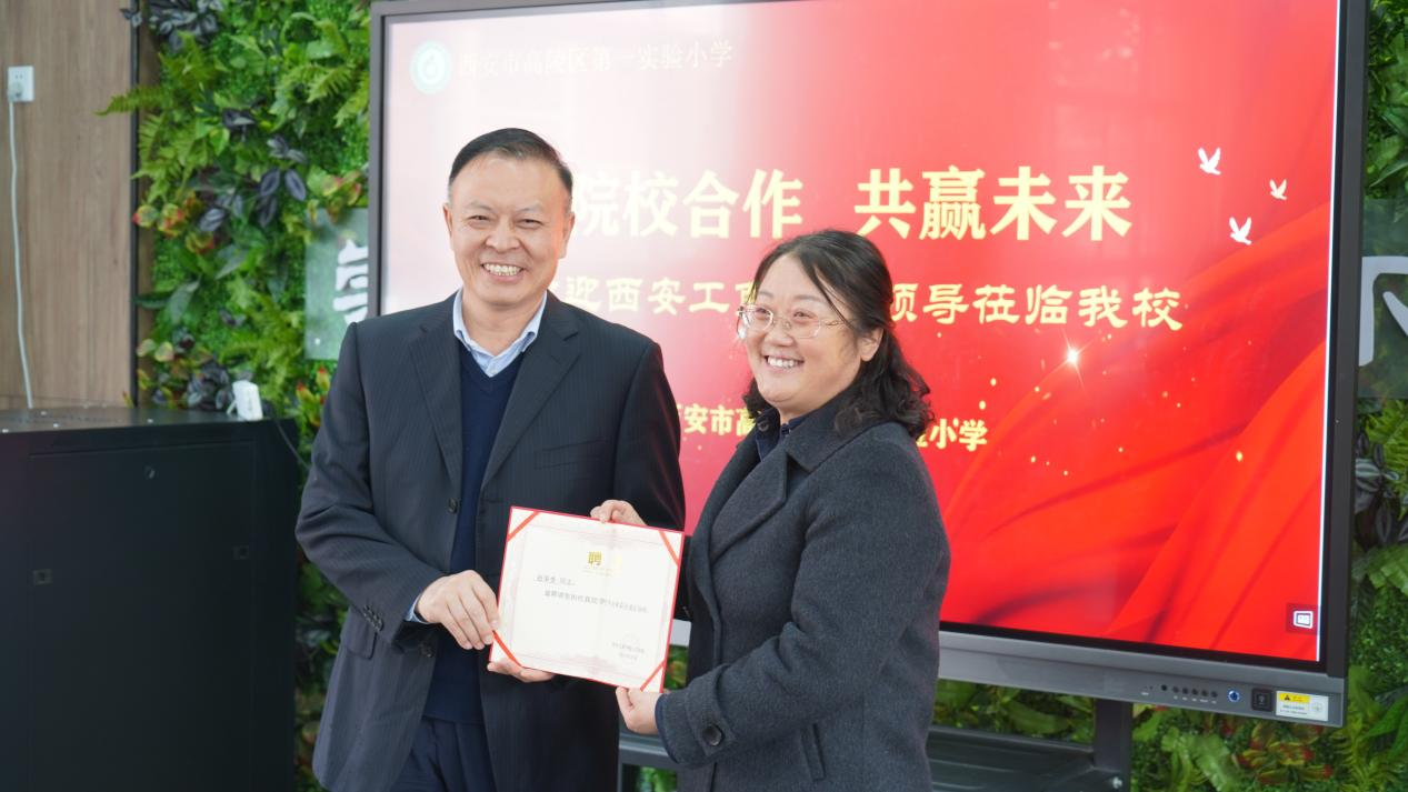 【西安工商学院校长向实验小学领导和教师颁发聘书】