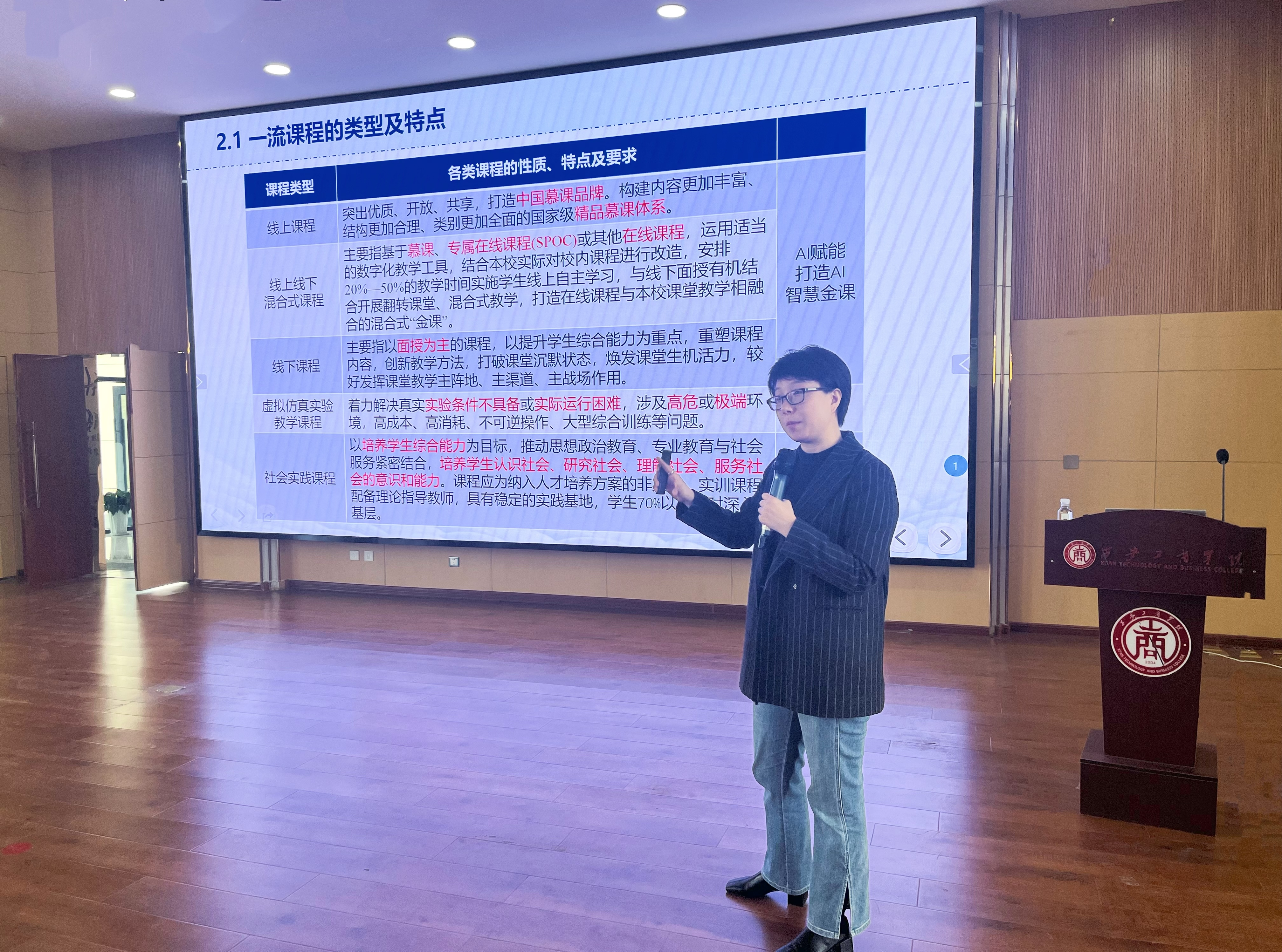 3月17日下午,教师发展中心邀请了国家级一流本科课程负责人、陕西省劳动竞赛标兵、西安工程大学任燕副教授,以“AI引领课程建设,助力培育“一流”课程”为题,为我校拟申报我校2025年校级本科课程建设项目的课程负责人及课程团队成员进行了专项培训。