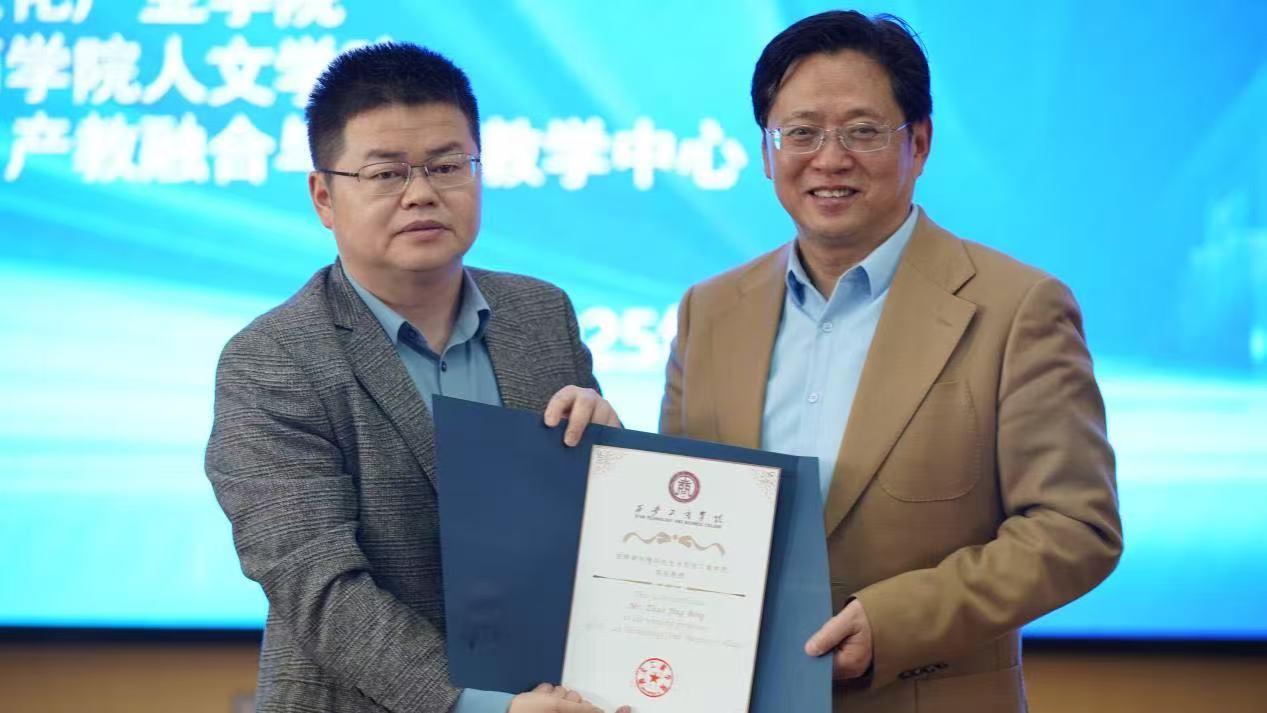讲座结束后,副董事长龙和平教授为赵精兵教授颁发了客座教授聘书。