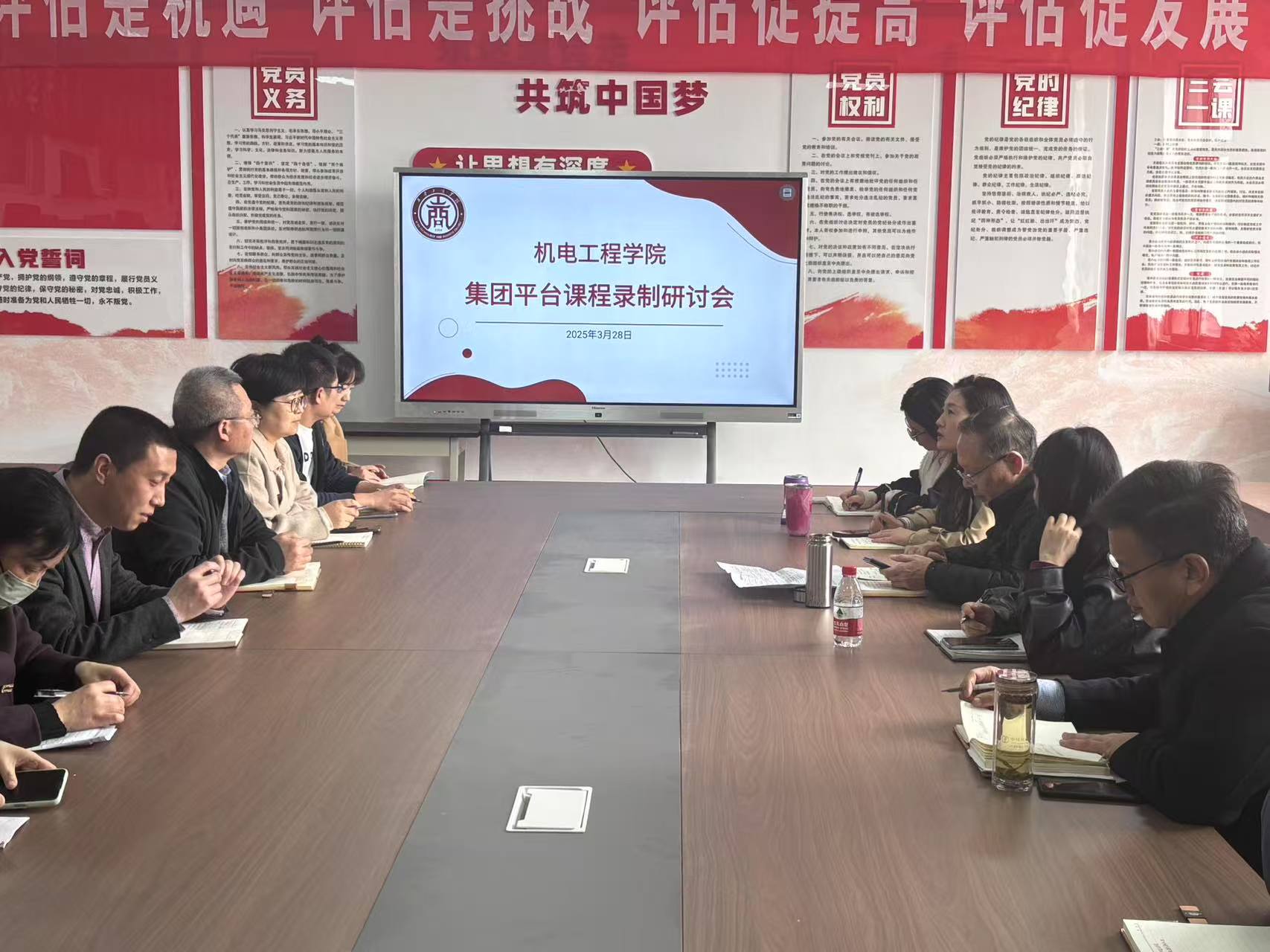 3月28日,我校召开“2+2”课程建设专项推进会,本次课程建设专项推进会参会人员包括:机电工程学院院长任工昌、执行院长韩娟、教学副院长薛凤凤、信息工程学院教学副院长王飞、教务处赵锦老师、以及我校参与平台课程建设团队全体教师。本次课程建设推进会由韩院长主持,会议围绕课程建设任务推进表,聚焦课程录制要点、教学重难点设计及规范性文档建设等内容展开部署。各课程组教师代表参会并分享建设经验,共同探讨课程脚本要点的撰写路径。