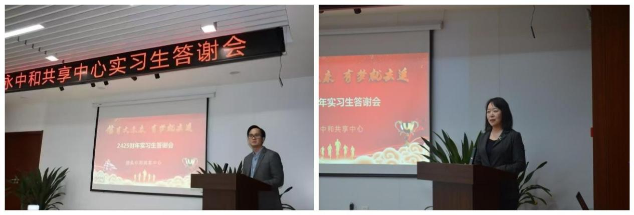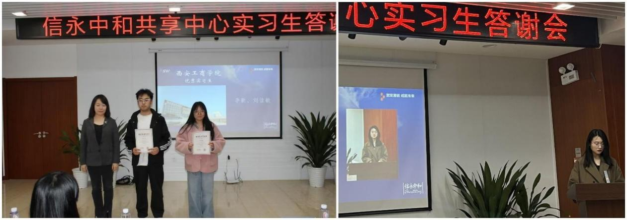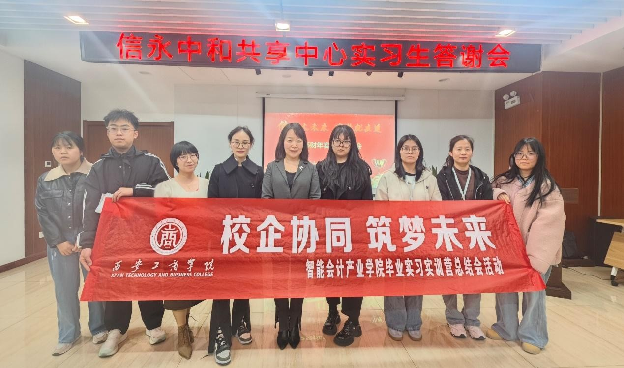 近日,信永中和共享中心举办了 2024-2025 财年实习生答谢会,会议就进一步深化与会高校合作,开展了更深层次的交流和探讨,并对优秀实习生进行表彰。信永中和杨子骐总经理、薛燕副总经理出席了本次答谢会。西安航空学院、西安欧亚学院、西安培华学院及陕西科技大学镐京学院等省内其他院校,也受邀参加了本次活动。我校作为优秀合作院校,经济与管理学院张雪鹏院长、实践中心张亮主任及会计系熊丽娟老师受邀参加了本次活动。此次活动得到了智能会计产业学院的大力支持。