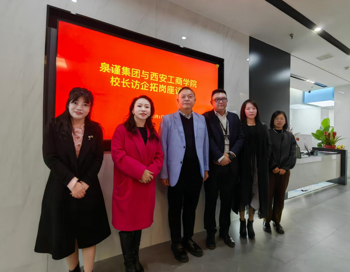 为进一步深化校企合作,持续推进产教融合,拓宽毕业生就业渠道,在智能会计产业学院的大力支持下,西安工商学院校长廖民生带领经济与管理学院院长张雪鹏、财务管理系主任王海芳及骨干教师,于近日赴泉谨集团进行走访调研。此次走访活动旨在共同探讨校企合作新模式,拓展人才培养新路径,推动学院专业建设与人才培养质量的提升。