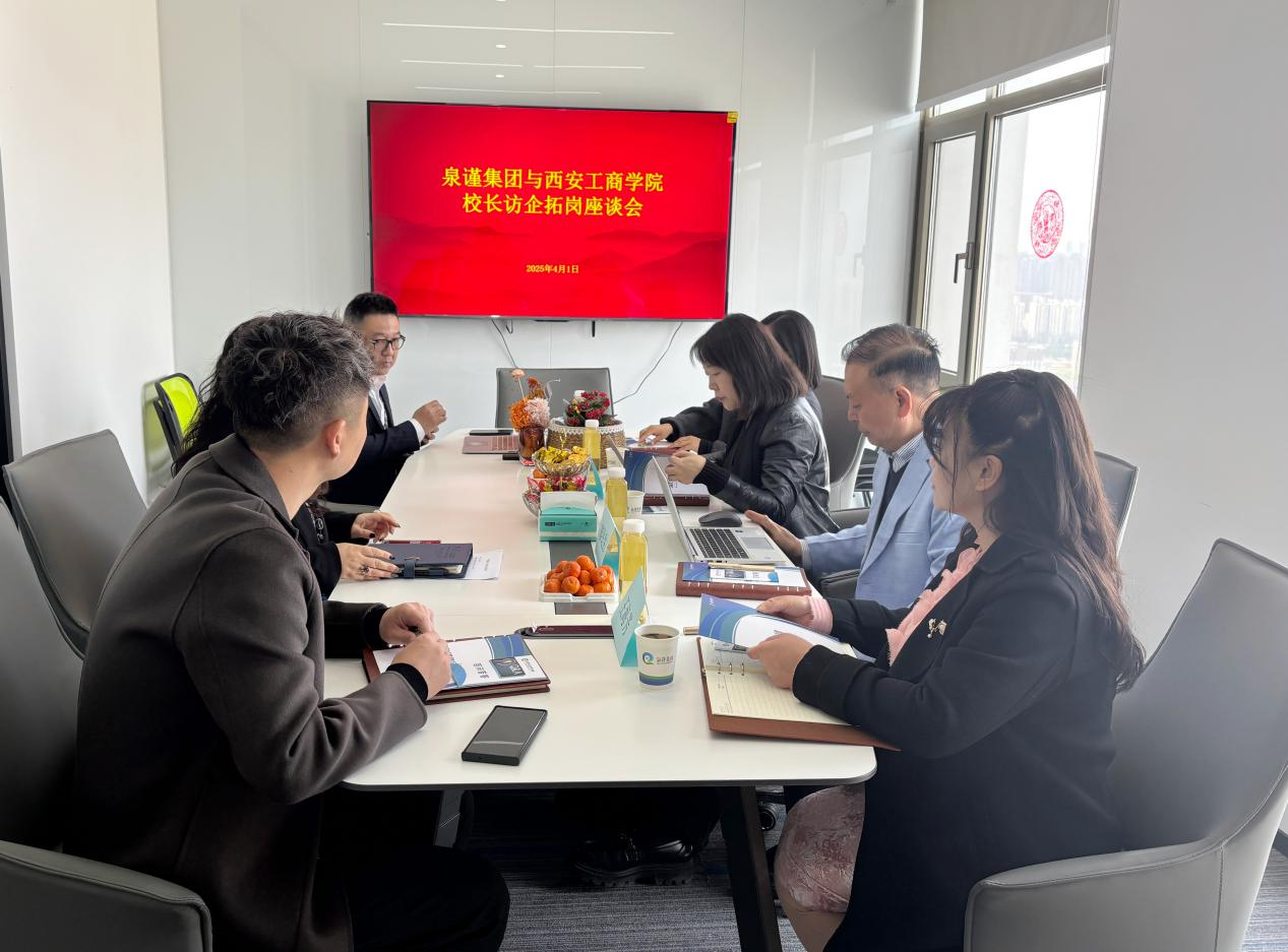 泉谨集团副总付丽娜对廖校长一行的到来表示热烈欢迎并邀请其参观了企业环境、业务流程、机构设置等。付总详细介绍了企业的发展历程、业务范围、企业文化以及校企合作经验。廖校长详细介绍了西安工商学院的人才培养模式和对学生未来成长发展的职业规划,希望借此机会与企业深化产教融合,搭建多元化合作平台。双方就课程建设、师资共培、实习基地建设、学生就业等方面中展开了深入的探讨。