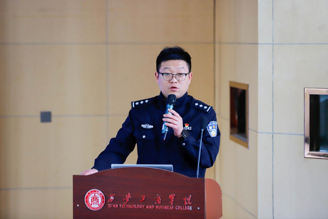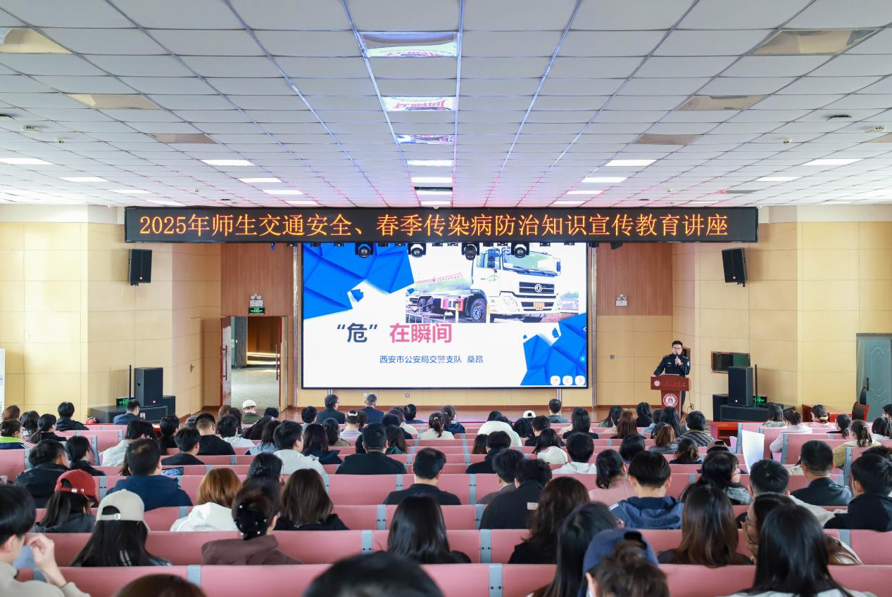为增强师生安全健康意识,共筑平安校园防线,4月2日下午我校后勤保卫处联合人事处在学术报告厅举办2025年春季安全教育专题讲座。高陵区公安局交警大队副大队长桑昂、区疾控中心结防科科长张亚静受邀,分别就交通安全规范、春季传染病防控等主题开展专题培训。全校职能部门负责人、二级学院领导、行政人员及师生代表300余人参训,活动由后勤保卫处处长助理任希同主持。