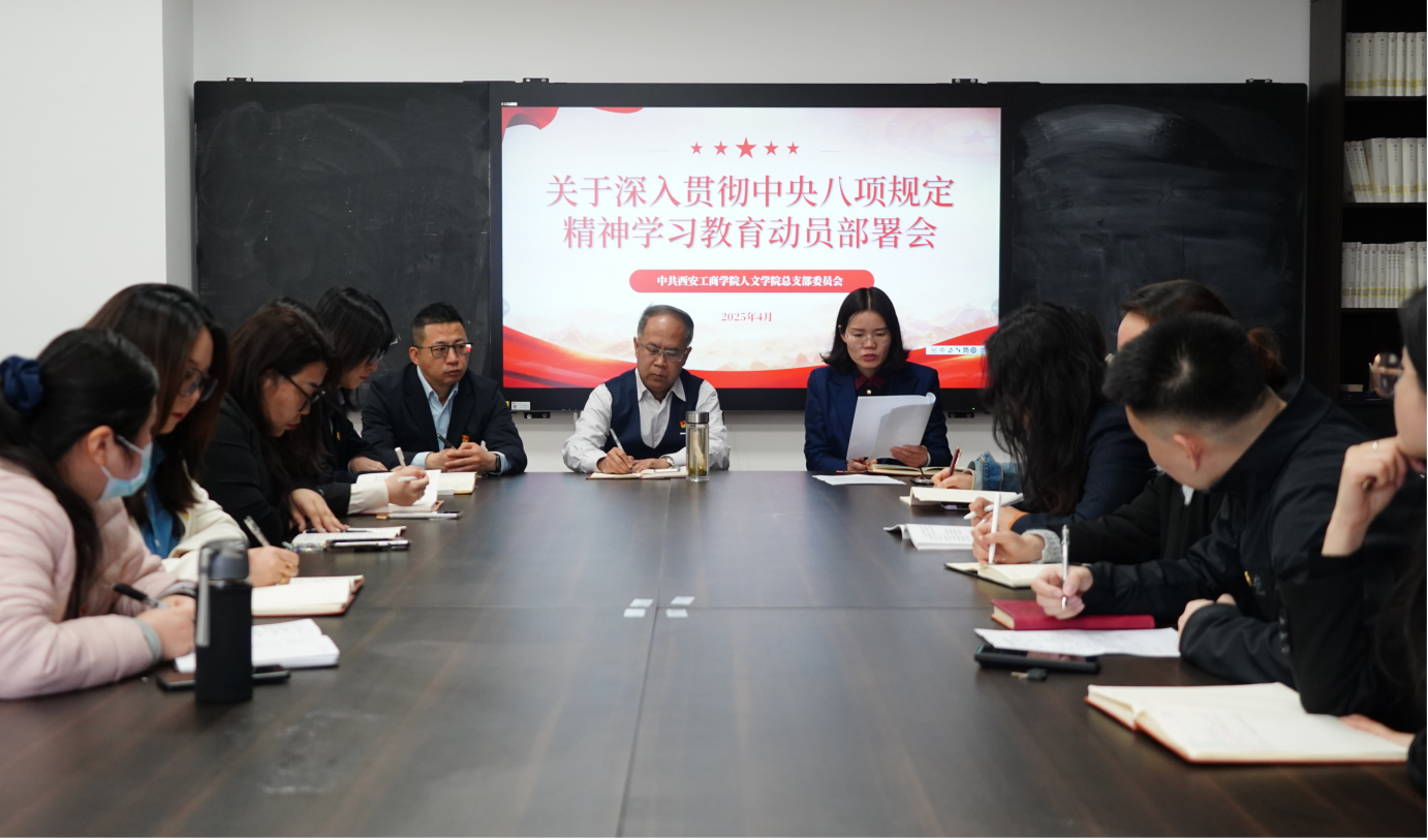 党委副书记杨红雨宣读《中共西安工商学院委员会关于开展深入贯彻中央八项规定精神学习教育的实施方案》。目标要求明确,工作安排分为认真学习探讨、坚持边查边改、深化集中整治和坚持开门教育四个方面,要求加强组织领导、加强工作指导、严格工作监督,并明确本次学习教育工作专班成员及分工细则。