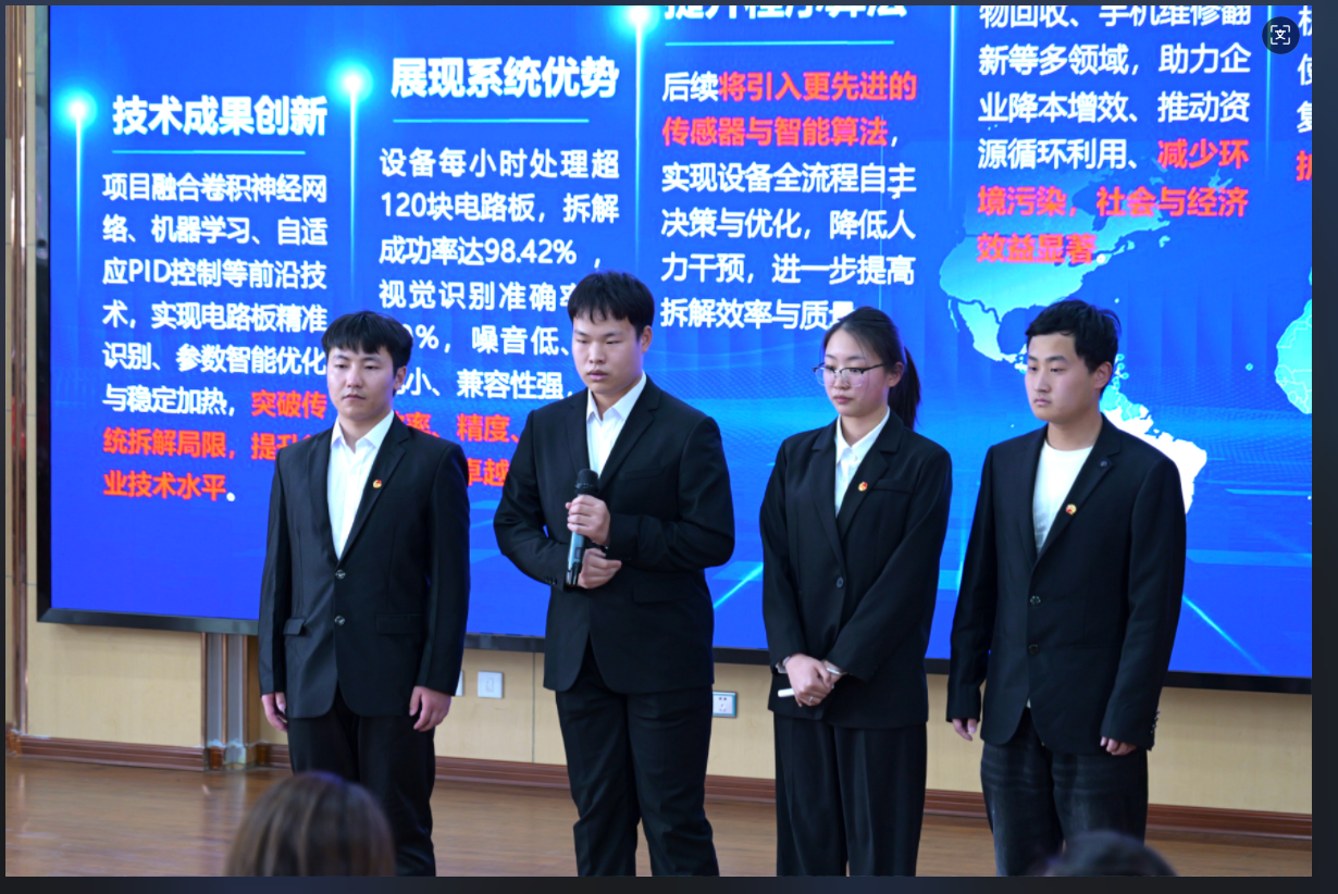 决赛路演中,参赛团队代表立足项目选题,通过PPT讲解、数据论证、实物展示等多种方式,全面呈现出项目的研究背景、创新成果及实践价值。评委专家以专业视角对参赛作品进行深度剖析,从技术可行性、创新性、科学性等维度,精准指出作品的优势与不足,提出针对性建议。专家的点评兼具理论高度与实践价值,为参赛项目指明优化方向,也为校园创新创业提供有益的思路与启发,助力参赛者在未来的赛事中实现突破。