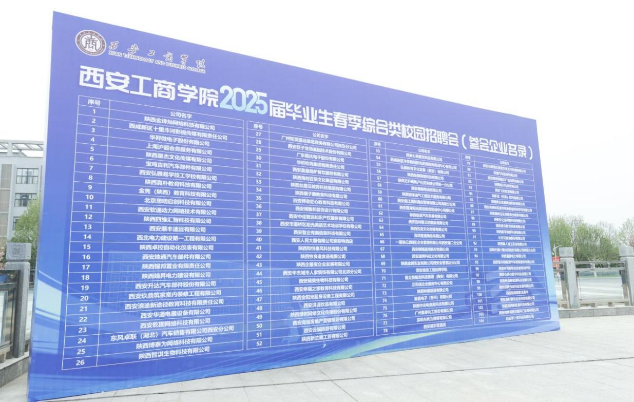 为深入贯彻落实教育部、省教育厅关于开展2025届高校毕业生“春季促就业攻坚行动”部署要求,抢抓就业关键期,充分发挥校园招聘主渠道作用,助力2025届毕业生高质量充分就业,4月11日西安工商学院2025届毕业生春季综合类校园招聘会在学校泮池广场举办,本次双选会由我校学生处主办,教务处及各位二级学院共同协办,现场企业覆盖信息技术、机械、电子、金融、文化教育、艺术传媒等热门行业,吸引包括西北电力建设第一工程有限公司、华奕微电子股份有限公司、奇瑞汽车股份有限公司、西安软通动力网络技术有限公司、陕西四维汇智科技有限公司等100余家企业,提供就业岗位3000余个,2025届毕业生踊跃参会,同时还吸引了大量在校学生参与。