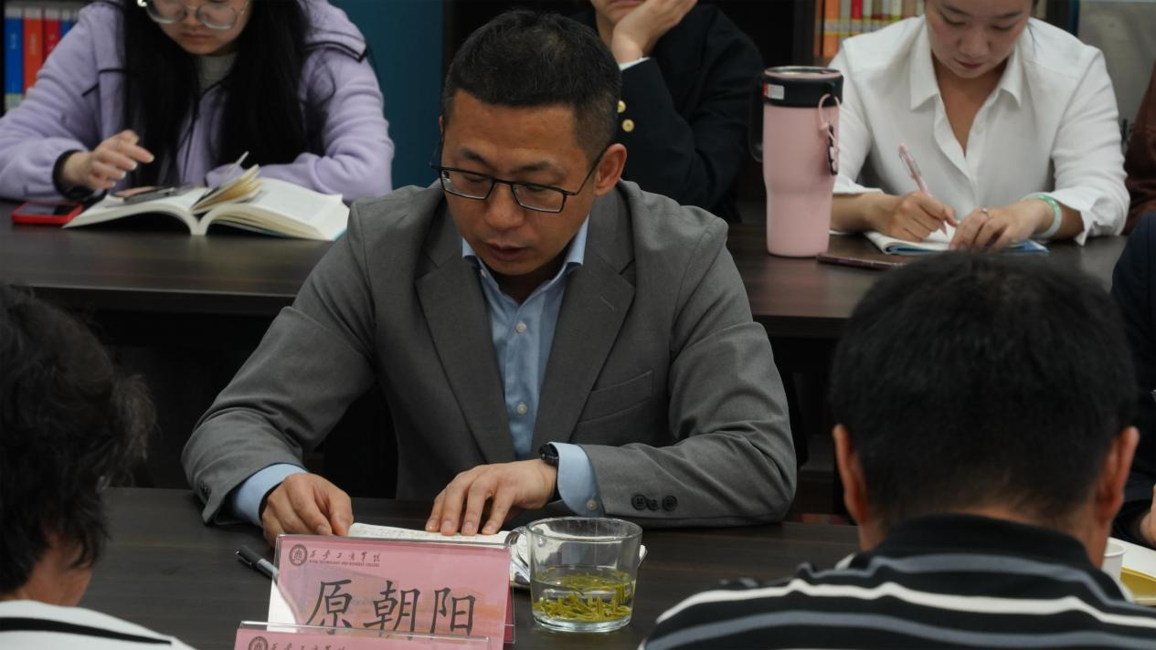 人文学院党总支副书记、副院长原朝阳教授汇报了学院围绕教育思想大讨论坚持的“三个一”工作方针,以“怎样培养人”为中心,聚焦合格评估,全面提升教学质量的具体做法和所取得的阶段性成果与经验。与会的学校无边界联合育人小组成员也先后发言,对人文学院开展的教育思想大讨论专项工作及教育教学工作等提出了宝贵的意见建议。教务处处长刘洪鹏提出,要将讨论中形成的成功经验运用到日常教学实践中;教学质量保障中心主任邸岚强调要进一步做好督导工作,寻找典型目标、典型教师,形成案例并推广;学生处处长王宇建议应从小切口入手,解决教学中存在的具体问题和困惑;评建办公室宋亚萍和张彬鹏建议将高校基本功能、学校办学特色和二级学院的教学工作结合起来,做到以学生为中心,以及具体工作规范性的重要性,并指出规范是各项工作的基础,要在日常教学和评估材料的准备上下功夫。