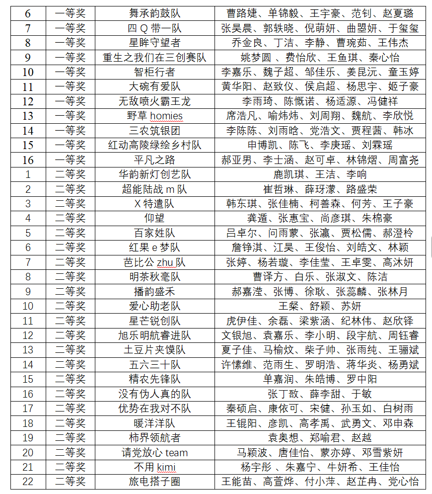 “三创赛”支持原创项目,按照大赛竞赛规则,要求参赛项目都应该是原始创新的项目,根据网审及线下比赛结果,本次校赛我校常规赛特等奖3名,一等奖16名,二等奖22名。获奖名单如下: