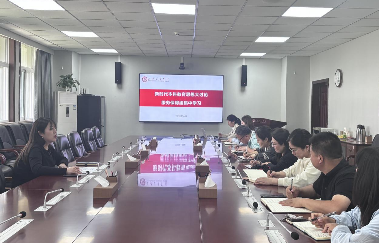 为深入贯彻落实教育部新时代全国高等学校本科教育工作会议精神,进一步解放思想、深化改革、加快提升人才培养质量和办学水平,迎接本科教学工作合格评估。4月24日中午11:00,服务保障组在行政楼第一会议室召开新时代本科教育思想大讨论集中学习。学校办公室、后勤保卫处、财务处、图文信息中心、审计处工作人员参加议。会议由学校办公室主任王延萍主持。