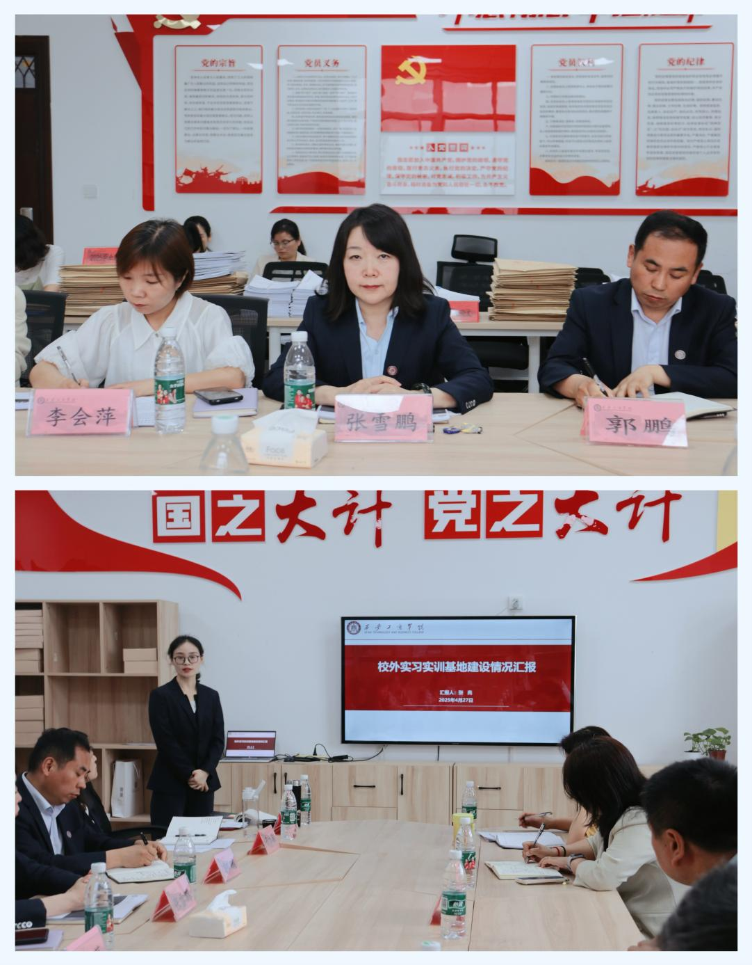 检查工作伊始,经济与管理学院产教融合及实践教学中心张亮主任对学院实习实训基地建设情况进行了专项汇报。汇报内容涵盖学院实习基地整体情况介绍、重点校外实习基地建设指标完成情况。同时,张亮主任以我院会计学专业重点校外实习(实训)基地信永中和(西安)数据服务有限公司为例,详细介绍了经济与管理学院校企合作的模式、内容、方式、成果等方面内容,通过学生前往企业实习就业、教师赴企业进行挂职锻炼、双方联合开展科研项目、共同开发教学案例等方式,实现了教学、实践与科研的深度融合,部分学生毕业后直接入职该公司,校企合作成果显著。