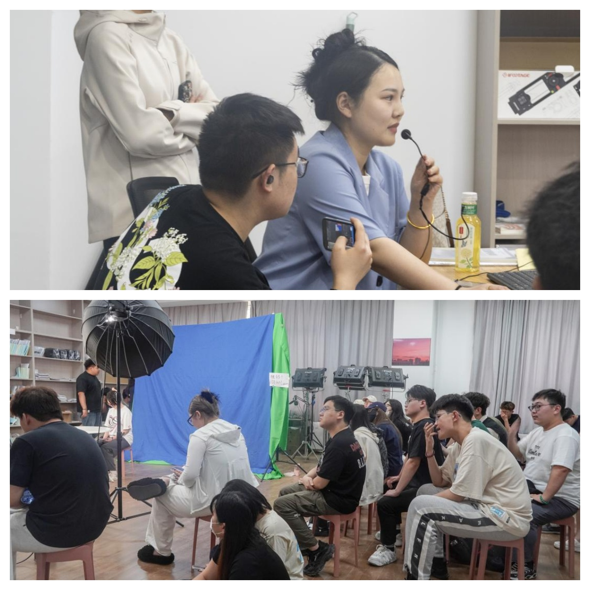 任课教师详细讲解了即创数字人成片功能的操作要点,从模型选择、文本输入到视频生成,每一步都演示得清晰明了。随后,她介绍了直播间搭建所需的设备,如摄像头、麦克风、灯光等,以及常用的软件工具,并讲解了直播伴侣在直播推流、画面管理等方面的功能和使用方法,还分享了绿幕抠像在直播场景切换中的技巧。理论讲解后,李老师带领同学们完整走了一遍操作流程,从数字人成片制作到利用直播伴侣推流至直播间,她着重强调当天重点内容——数字人成片,深入分析其优势与应用场景。