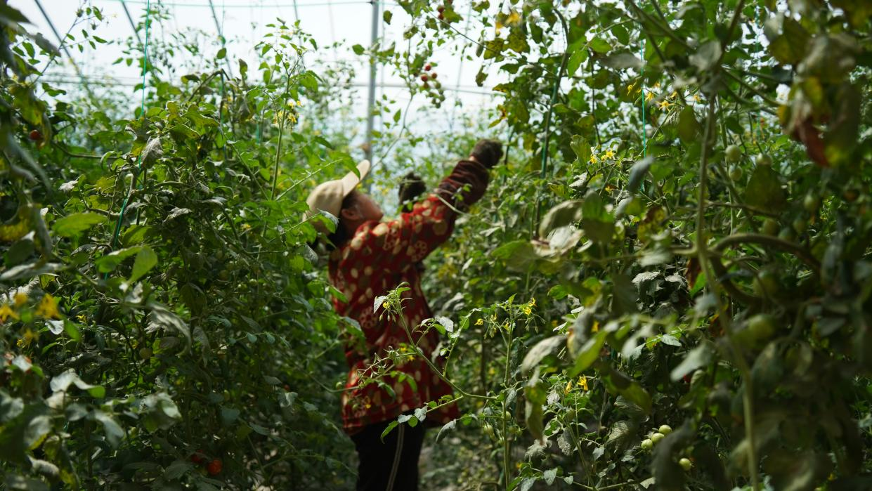【工人在棚内采摘】