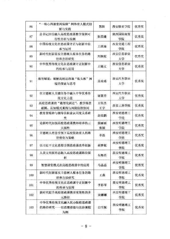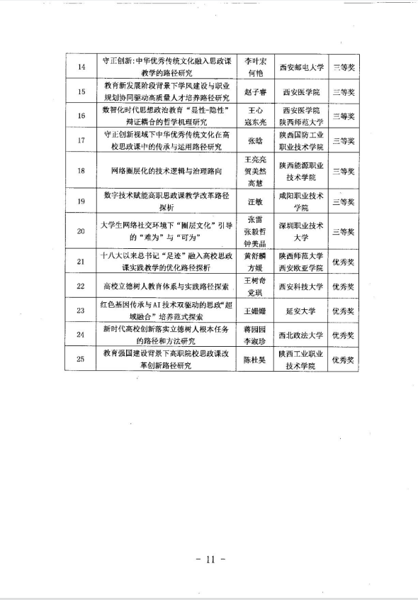 本次西安工商学院马克思主义学院组织专职教师积极参加,成果丰硕,共有11名教师获奖,其中一等奖2名,二等奖5名,三等奖4名。