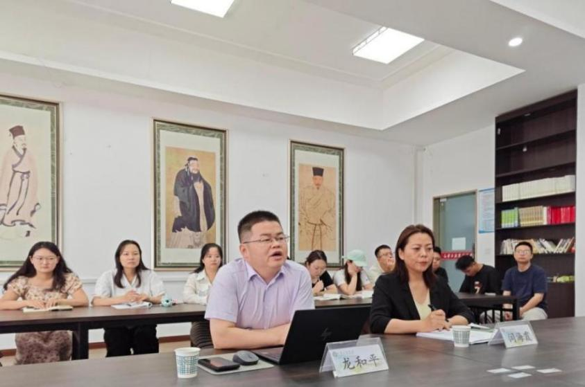 副董事长龙和平讲话,对学院未来发展提出殷切期望与严格要求,希望新的班子能够齐心协力围绕学院发展规划进行深入阐述,明确以“以评促建”为核心工作目标,紧扣“立德树人”根本任务,将工作目标逐项分解至各专业,精心设计人才培养方案,力求培养兼具专业素养与人文情怀的高素质艺术传媒人才。同时,针对教师成长与学生培养提出具体举措:学校将全面启动教师能力提升工程,通过多元化培训、外派学习、校内研讨等形式,助力教师提升职业素养与专业能力;在学生培养方面,将依托常态化班会、团学等活动载体,全方位提升学生综合素质,并创新实施毕业资格预审帮扶、特殊学生个性化培养等机制,确保教育教学工作精准落地。特别强调学院需加快完善教学团队、科研团队建设及相关支撑材料,全体教师务必按时补全教学资料,确保教学工作规范有序。同时,他要求相关负责人对前期验收及检查中存在的不足即刻整改落实,以严谨态度推进各项工作。