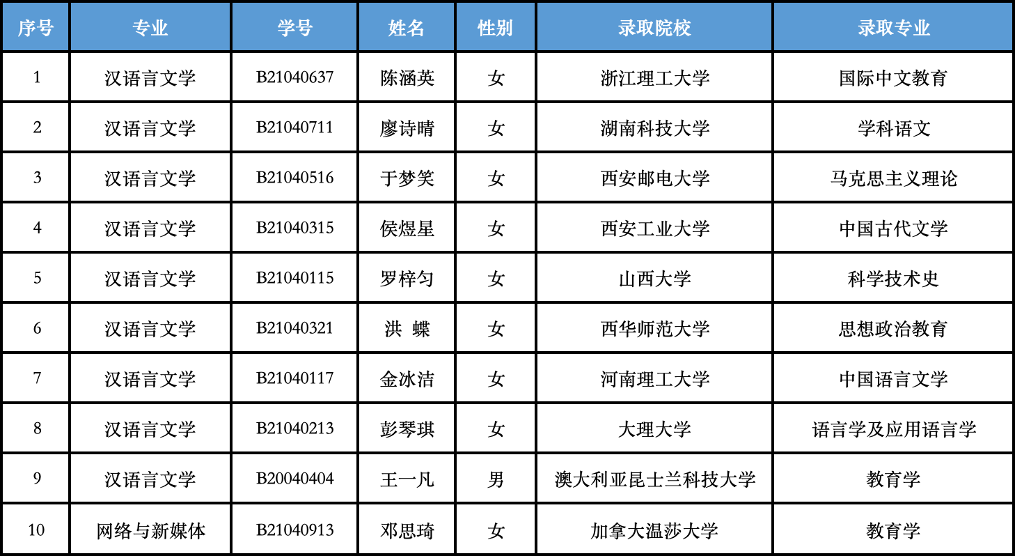 春风化雨育桃李,硕果飘香传佳绩。在人文学院“精准施策、全程护航”的考研工作理念引领下,人文学院扎实推进考研指导、备考帮扶等系列工作,助力学子勇闯研途。在2025年国内外研究生录取工作圆满收官之际,人文学院10位学子以扎实的专业素养、不懈的拼搏精神,在考研战场上斩获佳绩,再创新高!