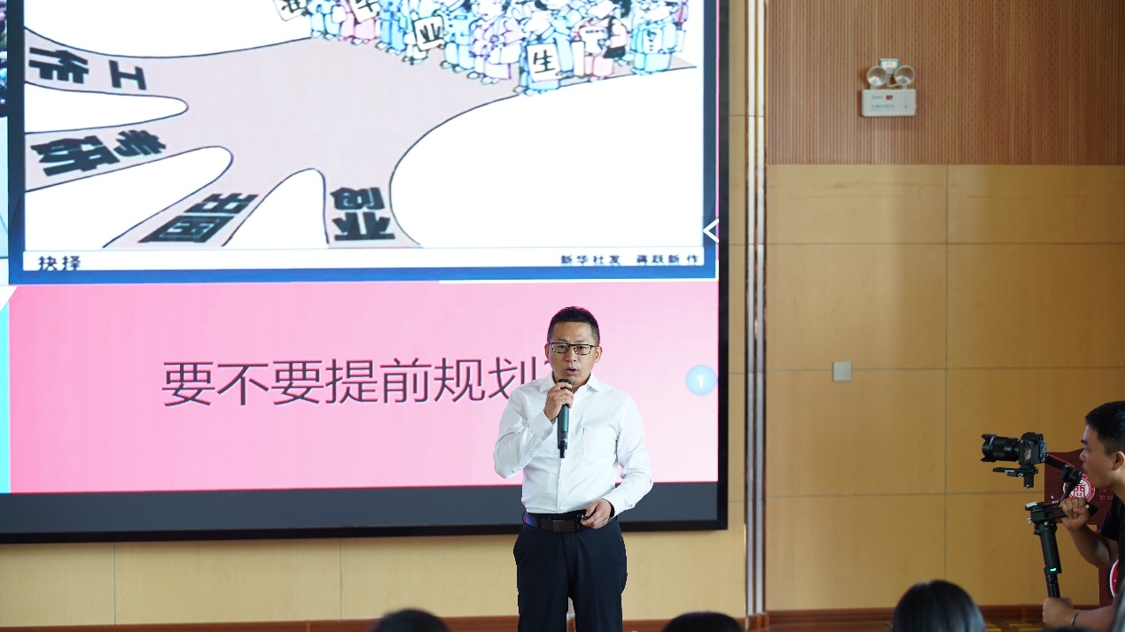 原朝阳深入剖析了本科毕业后的多元发展路径,强调理性选择与提前规划的重要性。他结合当前就业形势与考研趋势,阐释了攻读研究生学位在提升核心竞争力方面的重要意义,并引用古语勉励学子励志笃行、坚持不懈。学院也将通过导师对接会、导师精准辅导等形式为学生提供持续支持,助力同学们顺利考取国内外研究生。