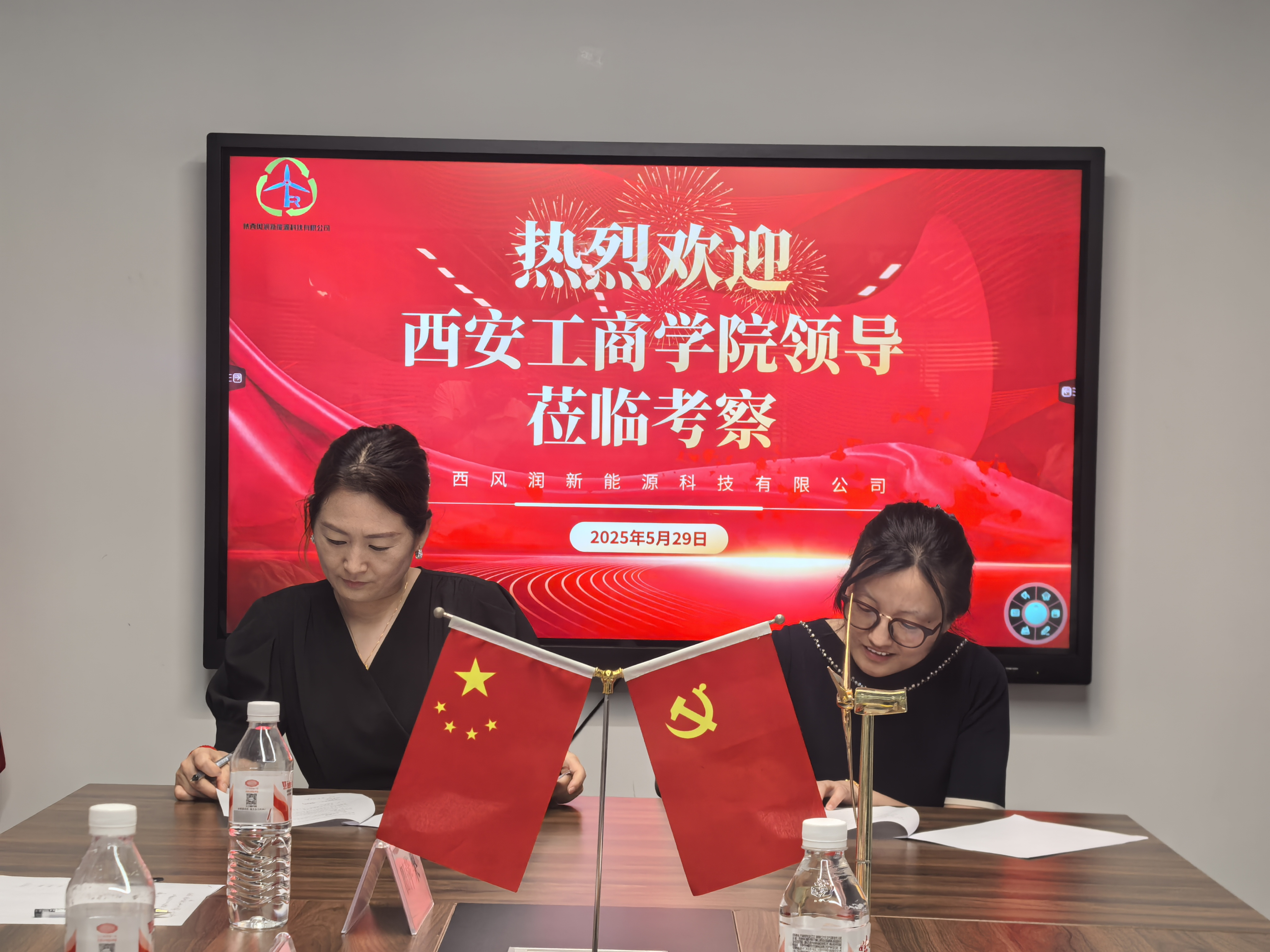 陕西风润新能源科技有限公司总经理王茜、人事经理李敏、综合部代表卢银玲,西安工商学院机电工程学院执行院长韩娟、机械设计及智能制造专业主任李东文、实践教学中心主任程光亮、以及骨干教师田萍果参加了本次仪式。