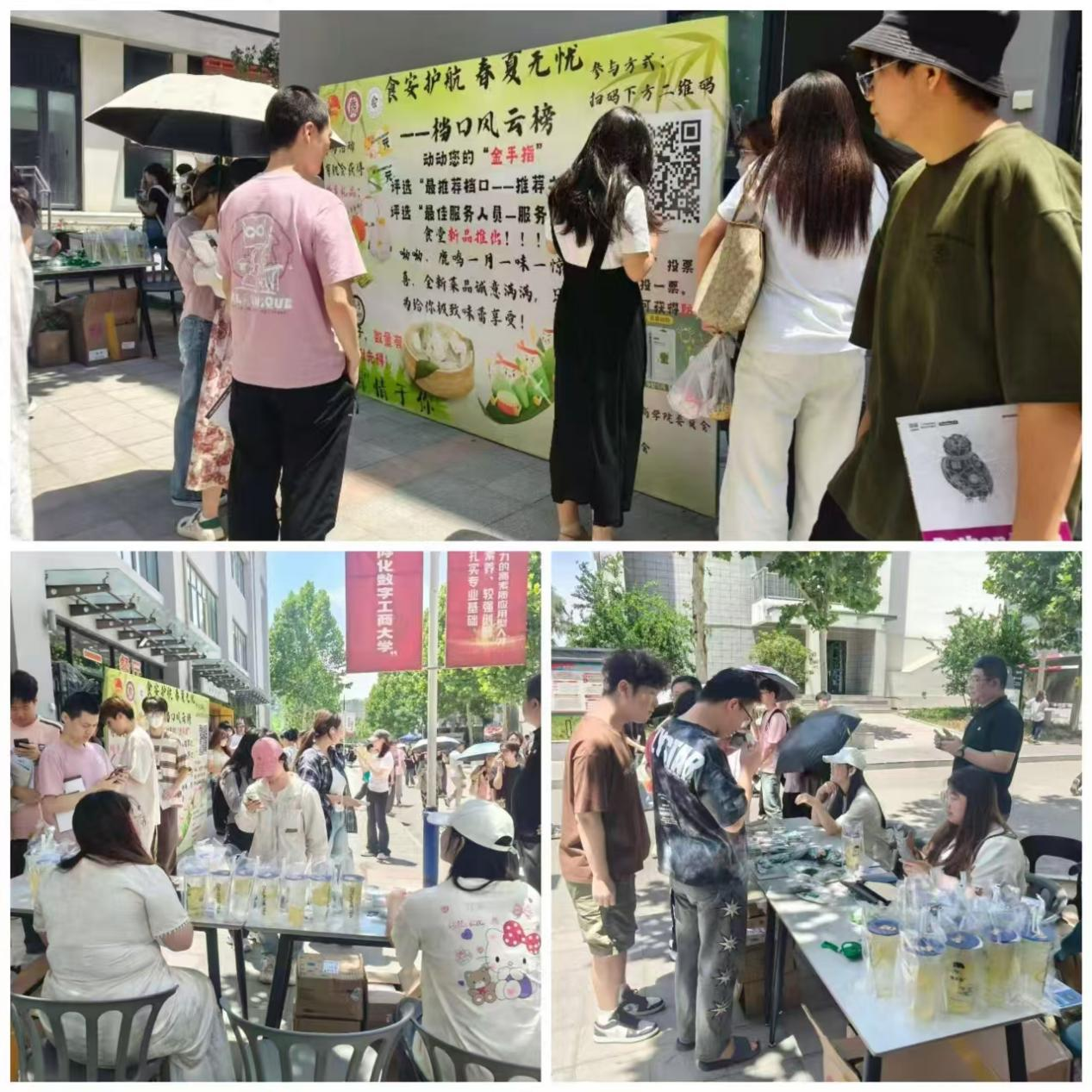 在全力保障食品安全的基础上,学校餐厅各档口积极创新,推出一系列特色美食,本次食品安全月系列活动现场设置“餐厅档口风云榜”问卷调查和“餐厅服务之星”投票环节,现场扫描二维码投票即可获得餐厅现金代金券、酷爽柠檬水兑换券、精美玩偶挂件、DIY粽子香包等奖品,推动食品安全理念深入人心,为师生营造安全、健康的用餐环境,丰富学生的校园生活,提升同学们对校园餐饮的关注度和参与度,提高餐饮服务质量。