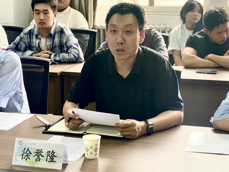 随后,党总支书记、学工副院长徐誉隆深入分析了当前考研形势。他指出考研是学生提升自我、追求更高学术目标的重要途径,鼓励同学们坚定信念,积极备考。他还详细解读了考研政策与专业调整趋势,如部分传统热门专业招生计划缩减,新兴交叉学科招生规模扩大,专硕招生规模持续上升且与学硕分数线分差有望缩小等情况,建议同学们密切关注目标院校招生政策,依个人兴趣、专业基础和职业规划科学报考。同时他还鼓励同学们调整心态,在备考过程中擅于利用资源,遇到困难及时寻求学院老师的帮助,学院也会致力于提供更多的支持与保障,为大家加油助威、保驾护航。