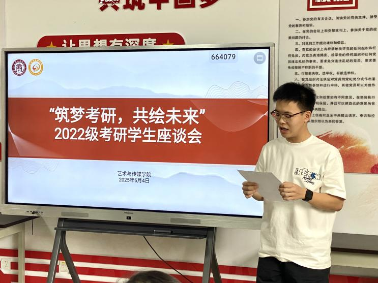 6月4日下午,艺术与传媒学院在实验楼301会议室召开“筑梦考研,共绘未来”2022级考研学生专题会议,艺术与传媒学院院长陈敏直、执行院长唐红春、党总支书记、学工副院长徐誉隆、各系教师代表、2022级辅导员、2021级考研成功上岸的同学以及2022级考研学生代表共同参会,会议由学工副院长助理孙诗睿主持。