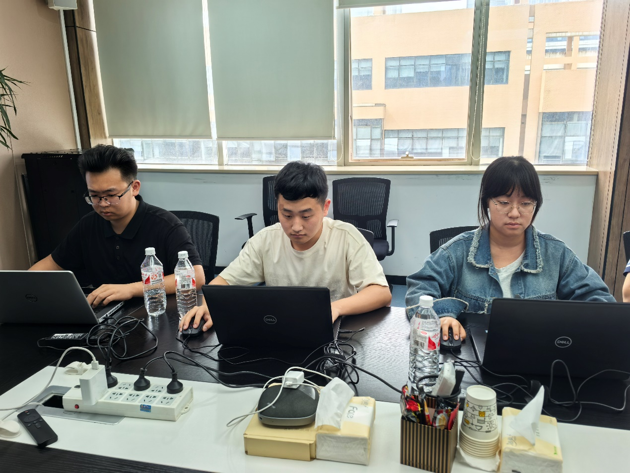 为了让学生更直观地感受项目实践,郭益军总监还对随行的三位计算机科学与技术专业学生进行了现场教学,指导他们实际操作项目所涉及的相关软件应用。在郭总监的悉心指导下,三位学生积极参与实践操作,对项目开发流程和技术应用有了更深刻的理解,展现出扎实的专业基础和较强的学习能力。