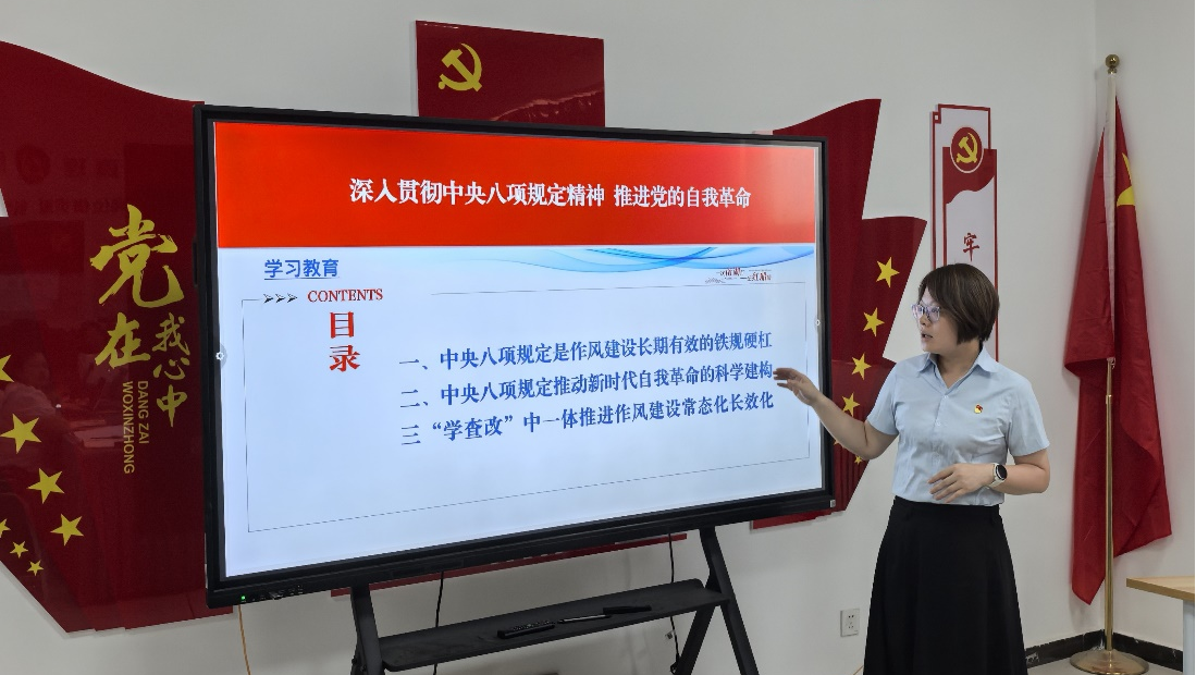 会上,党支部书记严建会首先带领大家回顾了中央八项规定的主要内容和重要意义。他指出,中央八项规定是党中央从自身做起、以上率下,推进全面从严治党的重要举措,对于改进工作作风、密切联系群众、营造风清气正的政治生态具有深远影响。党的十八大以来,在以习近平同志为核心的党中央坚强领导下,八项规定精神已经成为新时代共产党人作风建设的一张“金色名片”, 13年来引领党风政风焕然一新,社风民风持续向好,为党和国家事业发展提供了坚强政治保障。