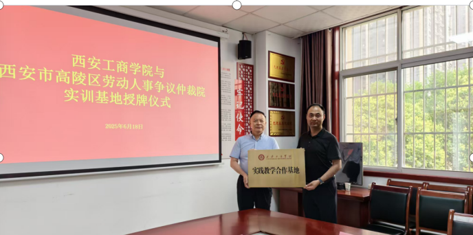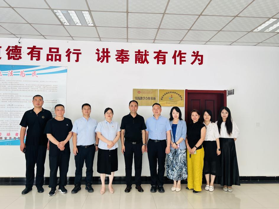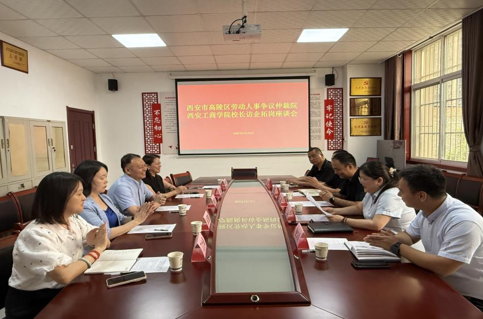 为深化校政企人才无边界育人机制,有效拓宽毕业生就业渠道,近日,西安工商学院廖民生校长率经济与管理学院张雪鹏院长、人事处闫海霞处长及人力资源管理专业骨干教师赴高陵区劳动人事争议仲裁院开展访企拓岗交流,并举行校外实践基地揭牌仪式。西安市高陵区人力资源和社会保障局郭超副局长、高陵区人才交流服务中心文满江主任、高陵区仲裁院王朵院长、徐少川副院长等出席本次活动。双方围绕校外实地基地建设、师资队伍建设、校政企无边界协同育人模式等议题展开深入研讨,助力应用型人才培养。