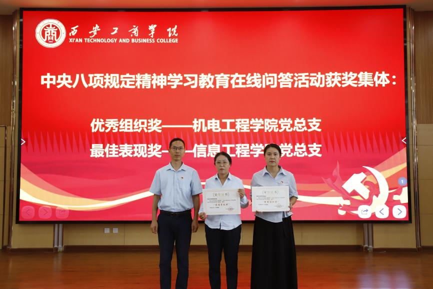党委委员、党委宣传部、统战部部长李景阳为中央八项规定精神学习教育在线问答活动获奖集体颁奖