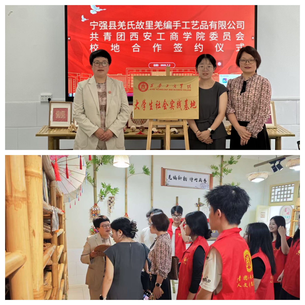 【宁强县羌氏故里羌编手工艺品有限公司、宁强县羌绣非遗文化产业园与共青团西安工商学院委员会举行校地共建签约仪式】