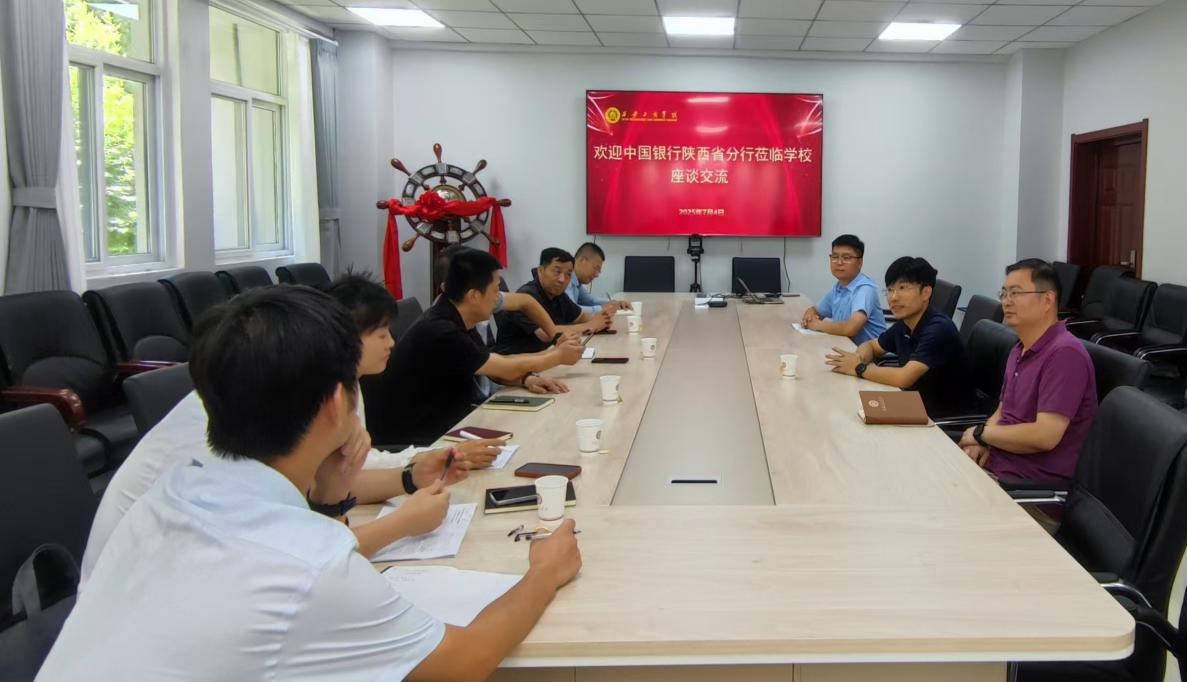 7月4日上午,中国银行陕西省分行代表团一行莅临学校座谈交流,交流会在学校第二会议室举行,校领导程波出席此次会议,学校财务处、招标采购办公室负责人及中国银行陕西省分行相关人员共同参会。