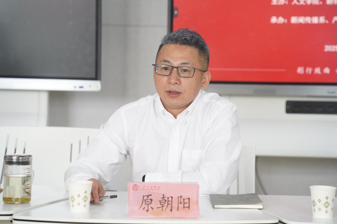 西安市高陵区高家小学黄利蔷校长、鹿苑中学张小梅校长、第一实验小学赵荣香校长受邀参加,人文学院院长,党总支副书记、副院长原朝阳,产教融合与实践教学中心主任张欢生,中文系主任许晶晶,中文系全体教师出席本次活动。会议由原朝阳主持。