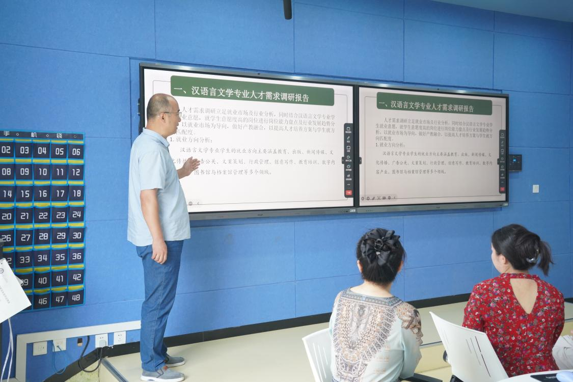 随后,中文系刘进副教授系统阐述了汉语言文学专业人才需求调研报告以及2025年人才培养方案修订说明。方案以详实的就业市场与行业需求调研为基石,紧密对接学生就业意愿,精准分析高意向岗位能力需求及行业发展趋势,力求提升培养目标与就业方向的契合度,突出就业导向与产教深度融合。