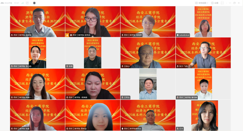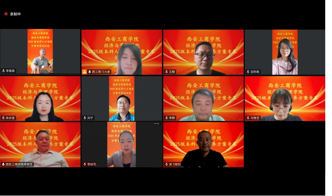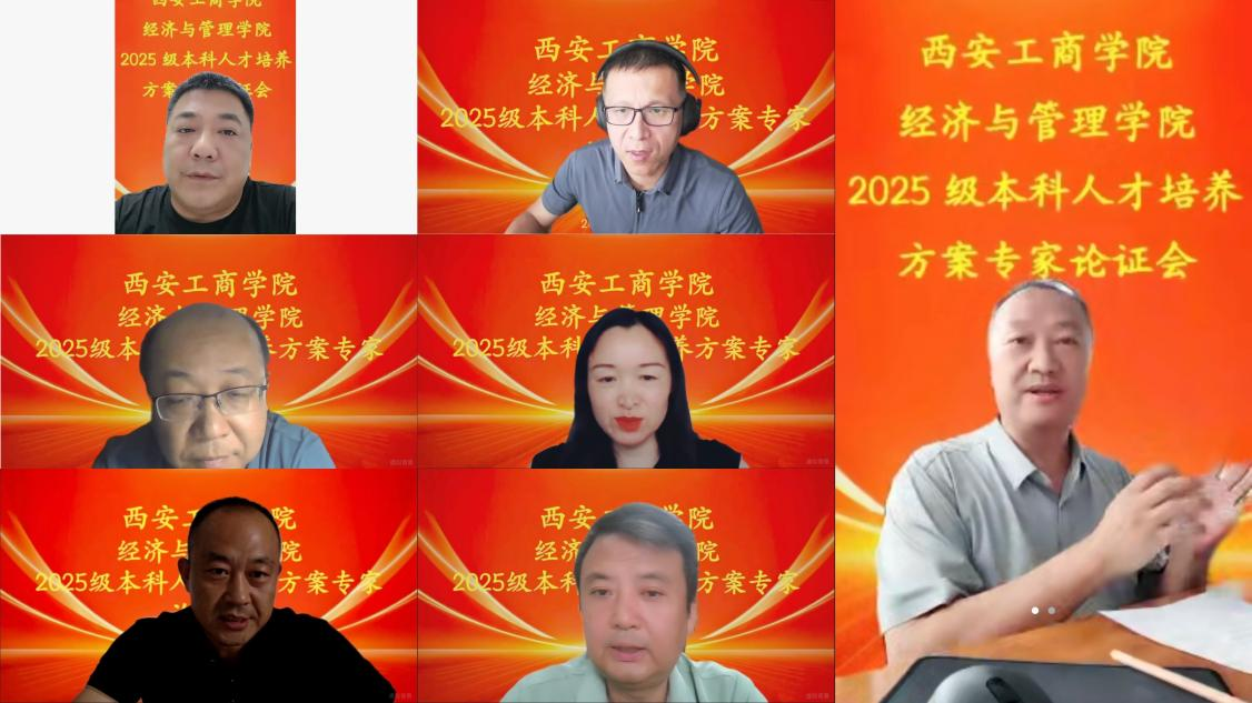 为深入贯彻新时代高等教育育人方针,主动对接国家战略与区域经济发展需求,构建契合AI时代与产业变革趋势的人才培养体系,在数字经济产业学院的大力支持下,近日,西安工商学院经济与管理学院顺利召开2025级金融科技专业、跨境电商专业、碳中和经营管理微专业、人力资源管理专业和大数据管理与应用专业的本科人才培养方案专家云端论证会。本次会议邀请了中央财经大学、西安工业大学、西安财经大学、西安工程大学等高校专家学者,以及西安市创新人才研究院、北京知链科技等行业领军人物共10余位专家出席。西安工商学院校长廖民生、经济与管理学院执行院长张雪鹏、各专业负责人及骨干教师齐聚云端共话人才培养创新路径,为专业建设与教育教学改革注入前沿智慧。