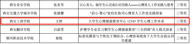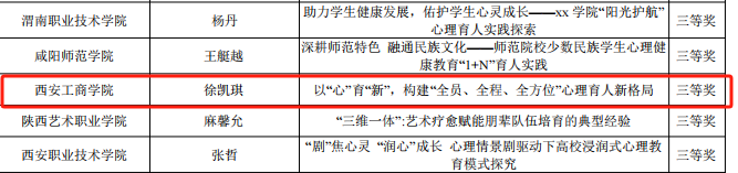 1. 2025年陕西高校学生心理健康教育指导典型经验奖项
